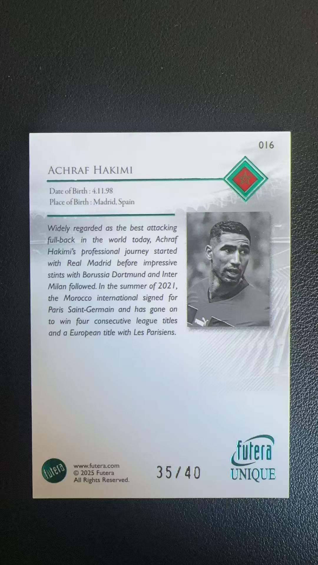 ![2025 Futera Futera Unique Achraf Hakimi [年轻人球星卡]接代拍 清哥 摩洛哥 阿什拉夫 哈基米 巴黎 35/40编 不保卡品 拍前看描述](https://images.cardhobby.com/a8bfe33baedfe27c15b9d9b1df3396e41760944900142.jpg)