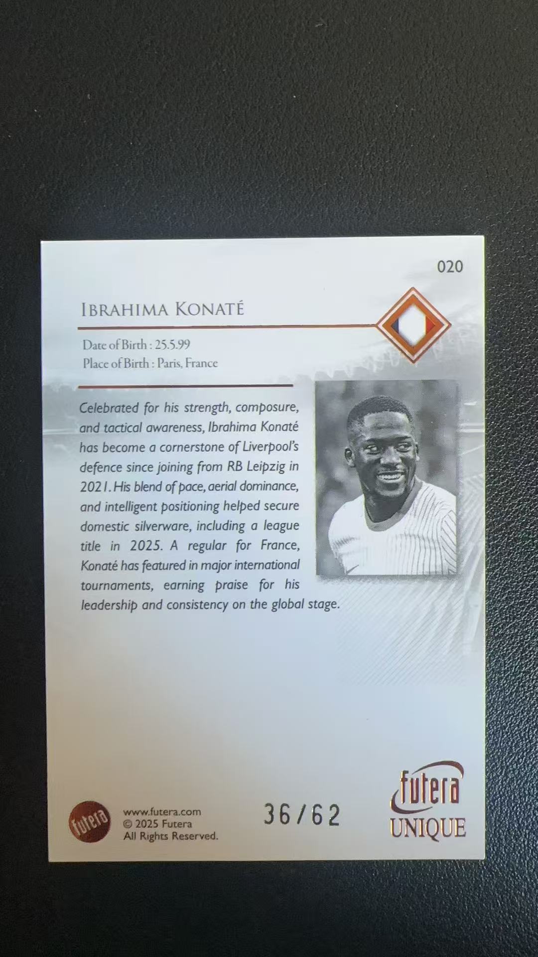 ![2025 Futera Futera Unique Ibrahima Konaté [年轻人球星卡]接代拍 清哥 法国 科纳特 36/62编 不保卡品 拍前看描述](https://images.cardhobby.com/d29260ca19a8faaec50e97a7326177e51760945062695.jpg)