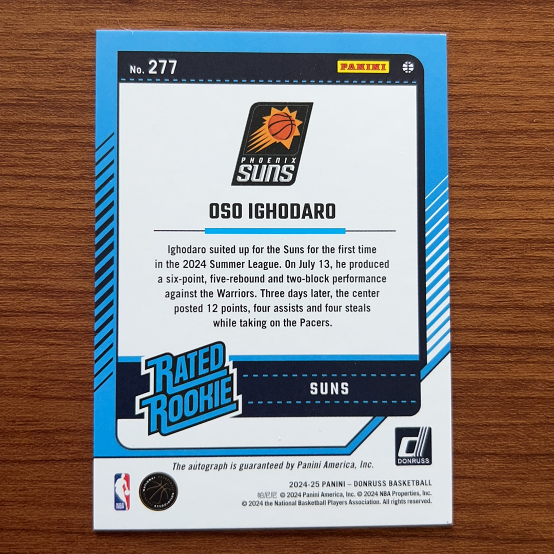 2024-25 Panini Donruss Oso Ighodaro RC 1号社团代拍 24-25 杜蕾斯 奥索 伊戈达罗 新秀 红折 签字 潜力 投资收藏首选