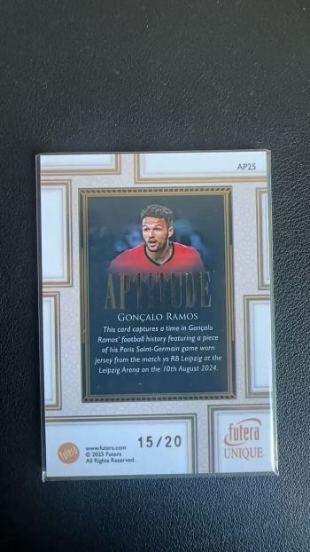 ![2025 Futera Futera Unique Goncalo Ramos [年轻人球星卡]接代拍 清哥 福特拉 葡萄牙 巴黎 贡萨罗 拉莫斯 15/20编 落场 球衣 物料 不保卡品 拍前看描述](https://images.cardhobby.com/1d5813495bbd3070761d40a7bd28fb651760946412752.jpg)