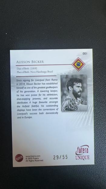 ![2025 Futera Futera Unique Alisson Becker [年轻人球星卡]接代拍 佩奇 福特拉 巴西 阿利松 29/55编 不保卡品 拍前看描述](https://images.cardhobby.com/fe64ed2fcdd1d8c5d4e3ea61b27111011760947971524.jpg)
