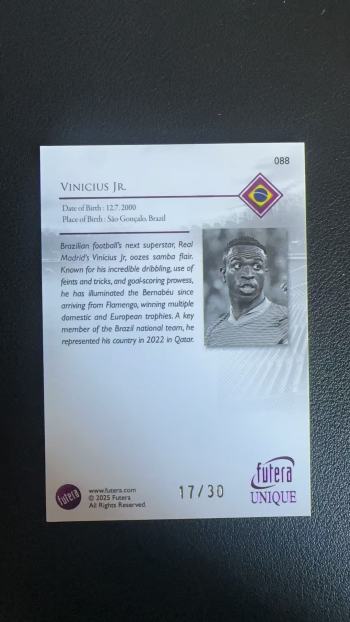 ![2025 Futera Futera Unique Vinicius Junior [年轻人球星卡]接代拍 佩奇 福特拉 巴西 维尼修斯 17/30编 不保卡品 拍前看描述](https://images.cardhobby.com/f5bd94f7f3d44dce93378c3a30388bd11760948088301.jpg)