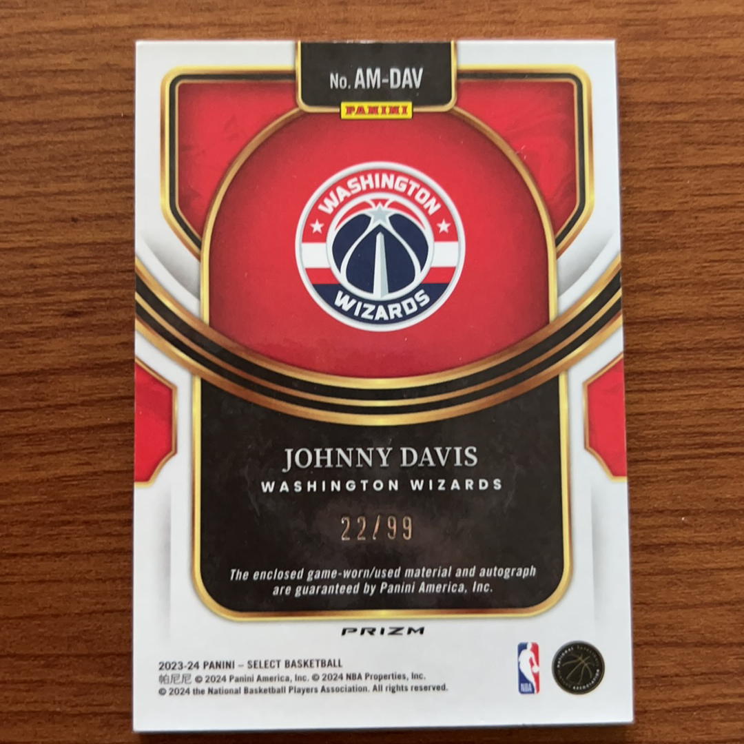 2023-24 Panini Select Johnny Davis RC 1号社团代拍 23-24 Select 强尼 戴维斯 签字 物件 球衣 潜力 22/99编 投资收藏首选