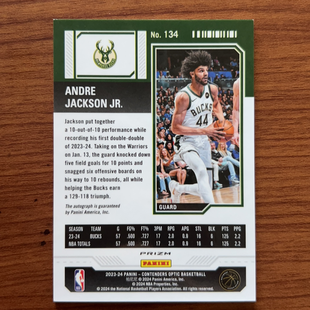 2023-24 Panini Contenders Andre Jackson Jr. RC 1号社团代拍 23-24 球票 小安德烈 杰克逊 新秀 签字 银折 卡签 潜力 投资收藏首选