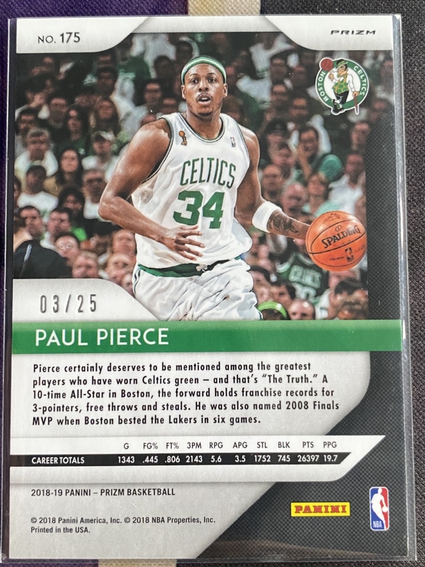 2015-16 Panini Prizm Paul Pierce 真理 保罗皮尔斯 mojo 迷宫折 03/25 艾弗森 同背