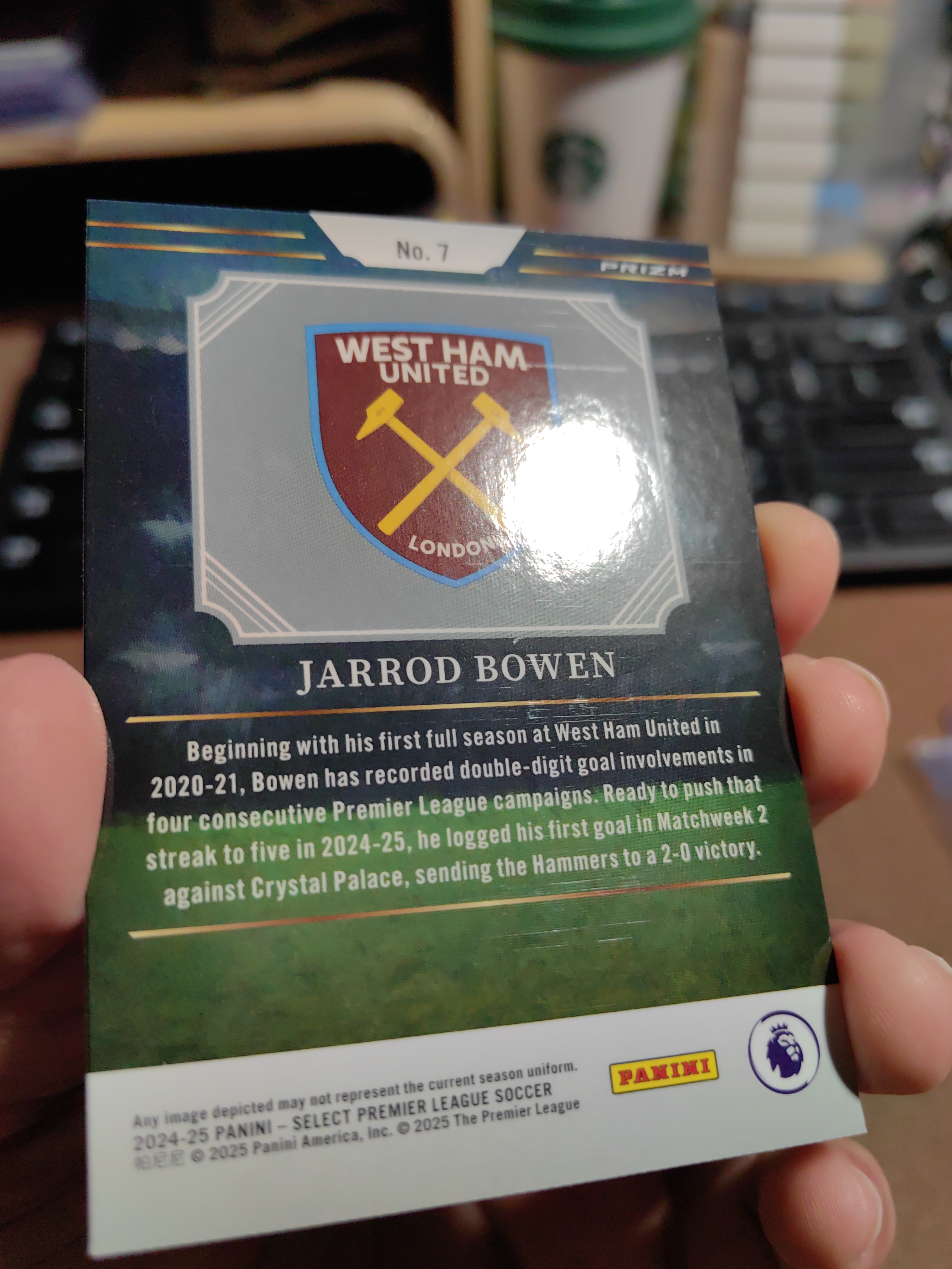 2024-25 Panini Select Jarrod Bowen SE 英超 西汉姆联 鲍文 artistic 艺术印象 大比例 卡背如图 [孙1020]