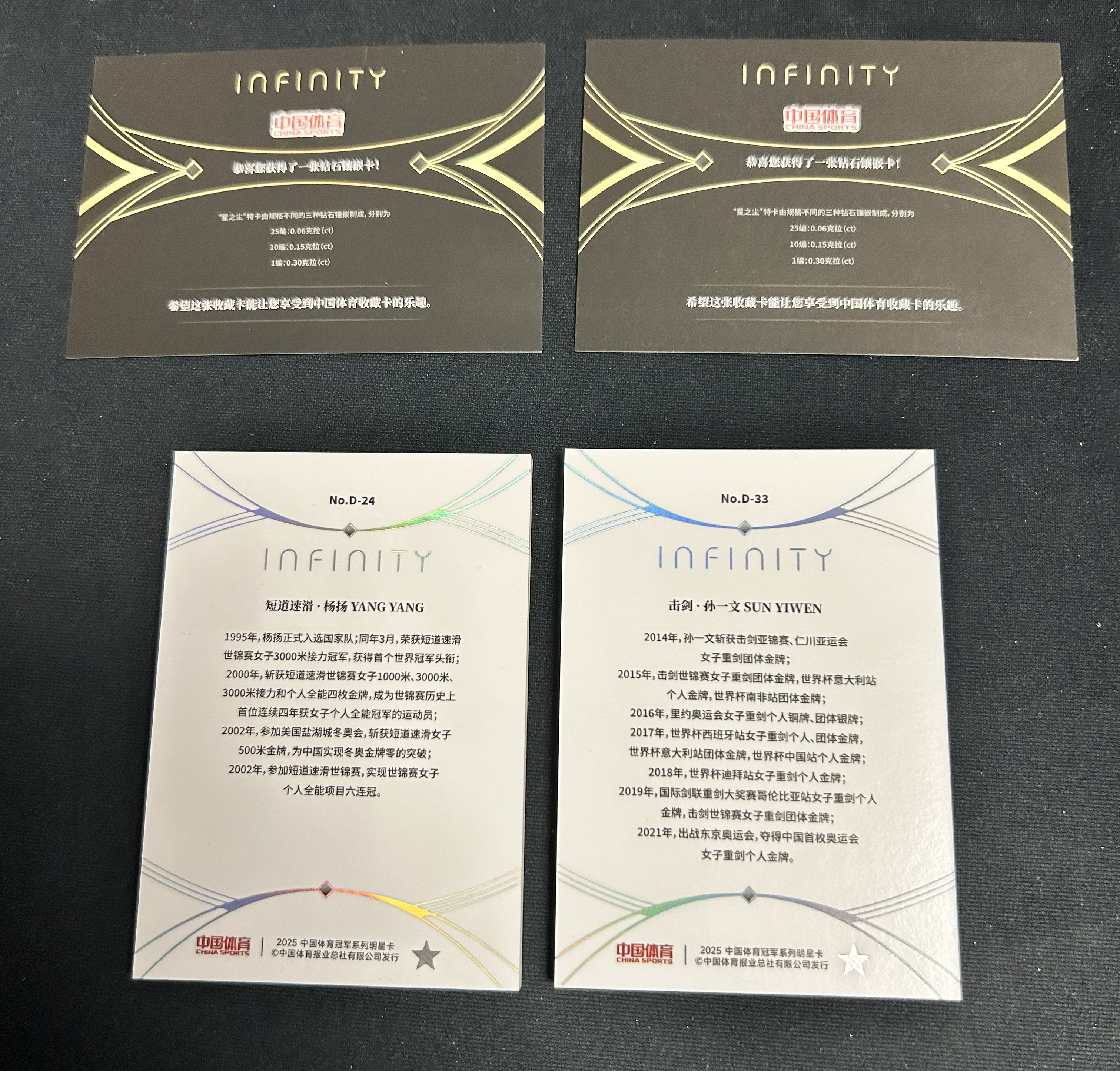 2025 奇卡 QICA 中国体育 无限 25编钻石卡 短道速滑 杨杨 击剑孙一文 (钻石带证书)