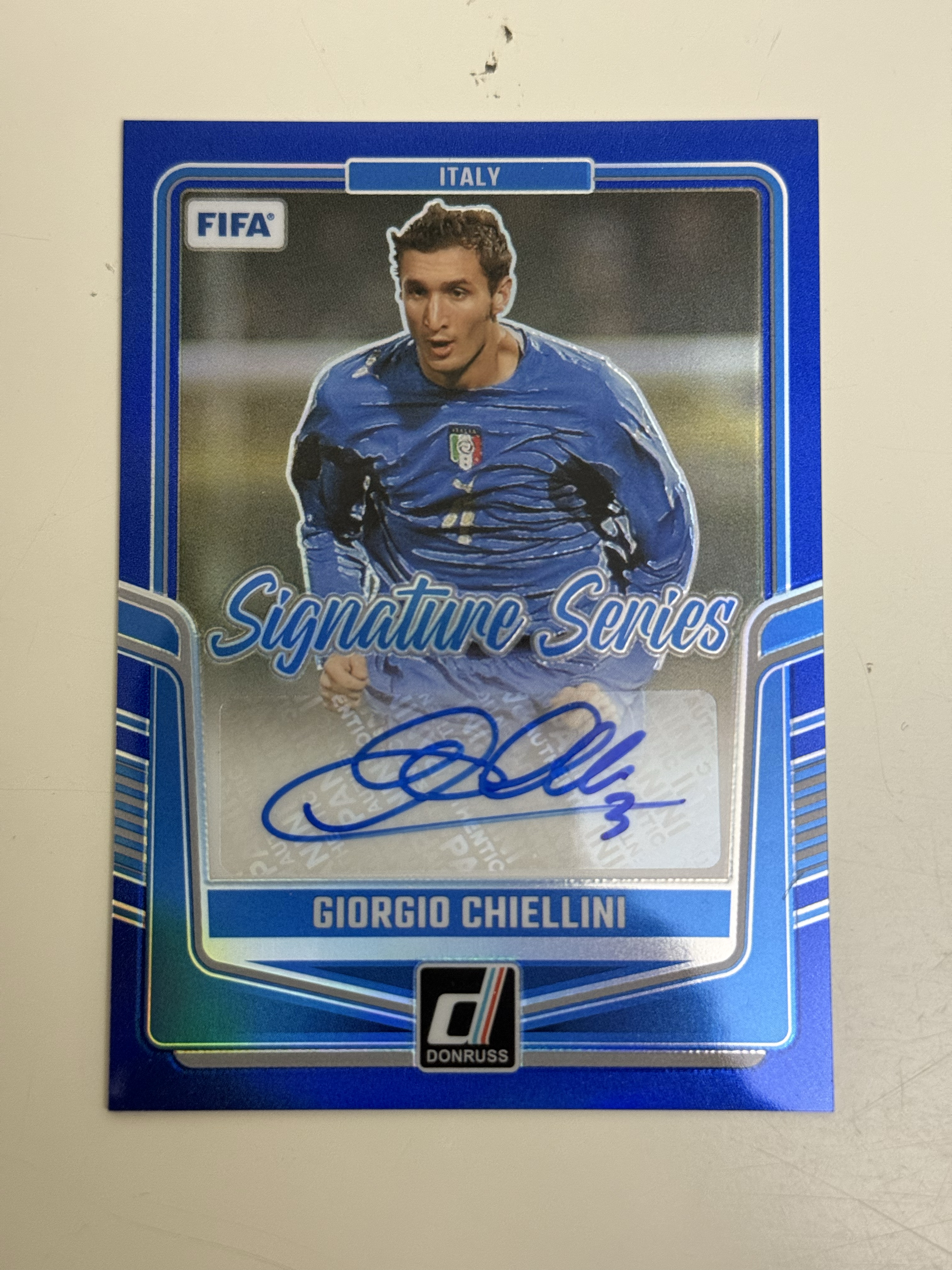 2024-25 Panini Donruss Giorgio Chiellini 杜蕾斯 意大利 基耶利尼 99编 蓝折 签字卡 传奇后卫 尤文图斯 卡品细节墨迹如图