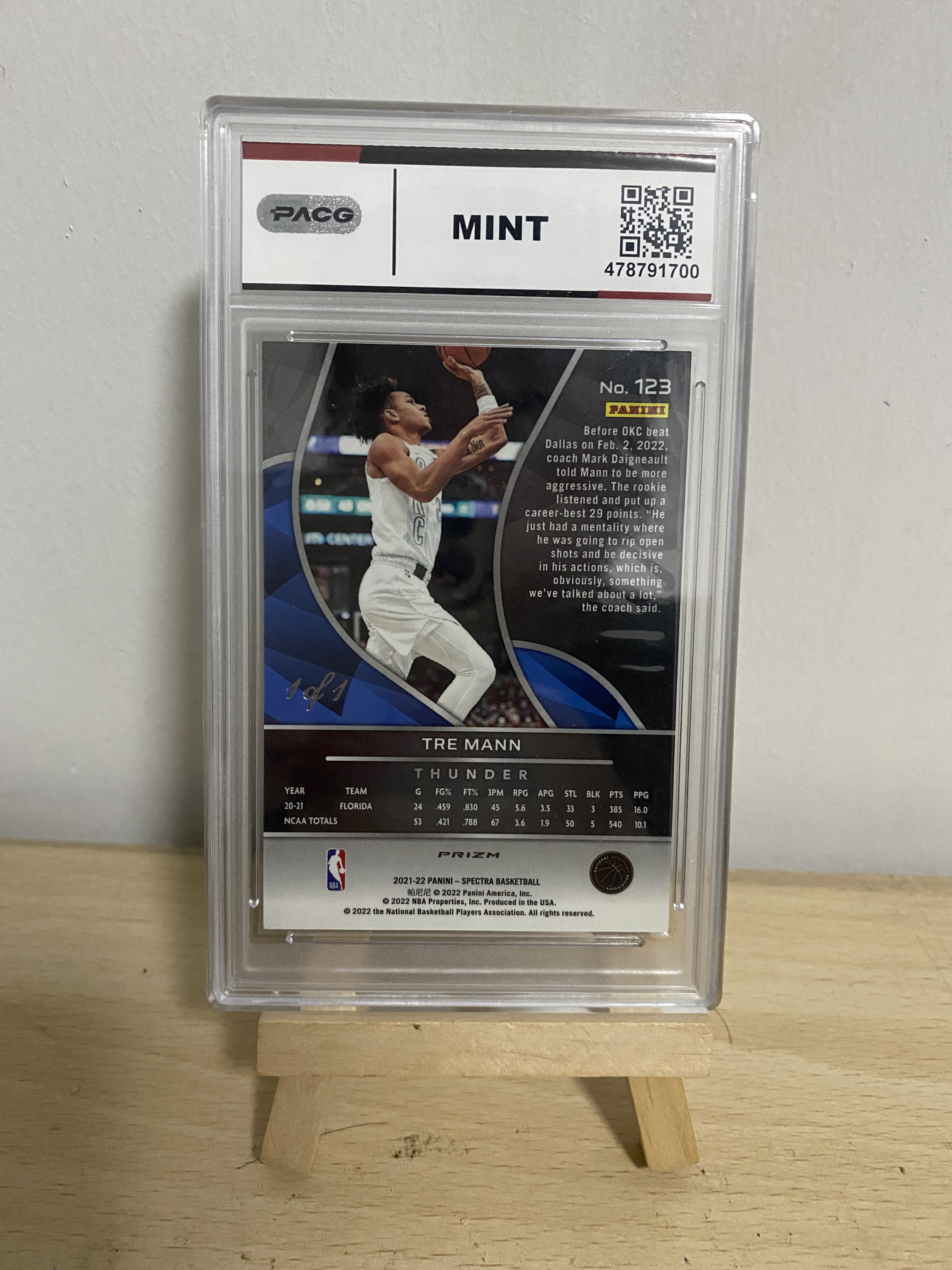 2021-22 Panini Spectra Tre Mann RC 光谱 特雷 曼恩 新秀 hyper 亚洲黑 折射 1/1 one of one PACG评级9分 品相完美 雷霆 黄蜂 卡品如图