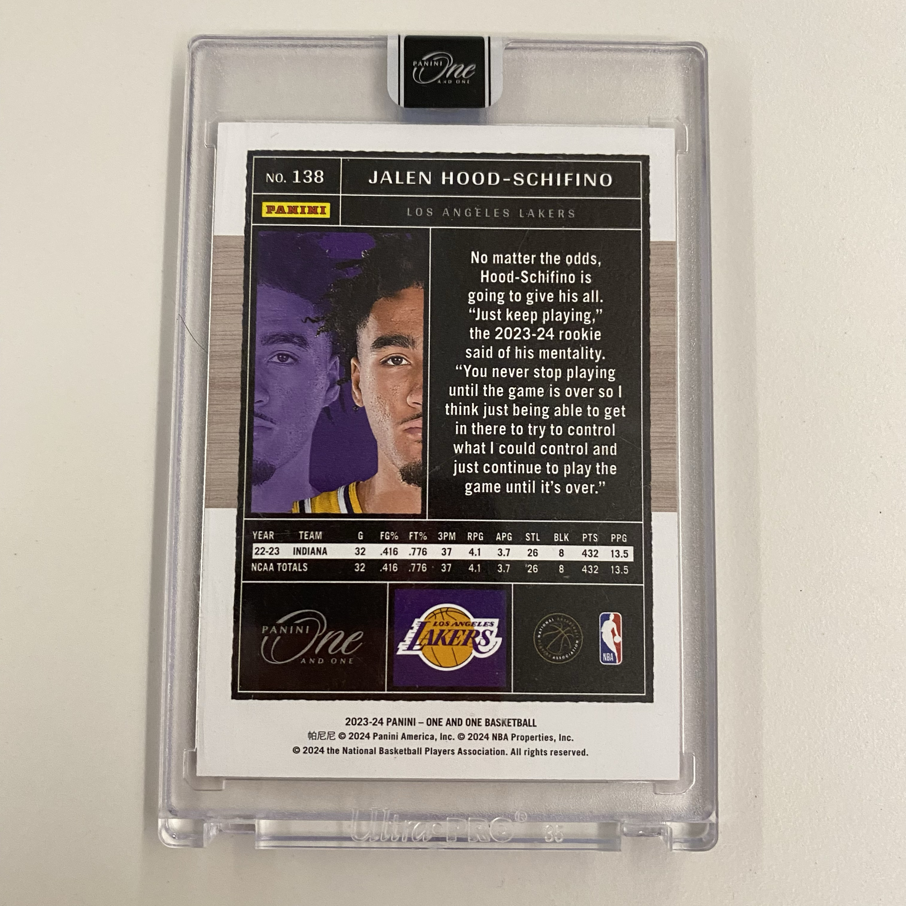 2023-24 Panini One and One Jalen Hood Schifino RC 杰伦 胡德 席菲诺 新秀 湖人 13/15编 红折 base 特卡 原封砖