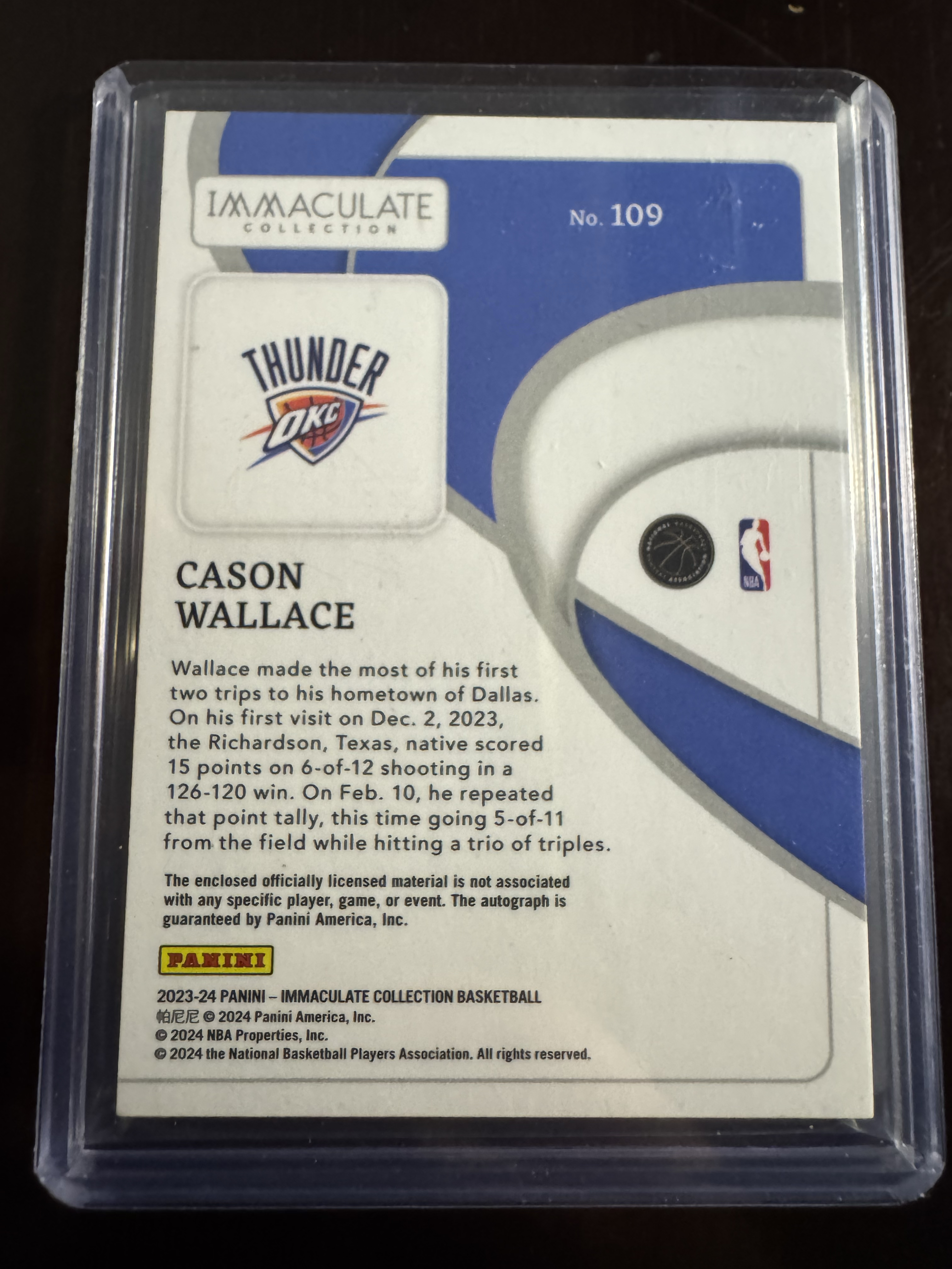 2023-24 Panini Immaculate Collection Cason Wallace RC 卡森·华莱士 新秀年 RJA 三色 雷霆 patch 亚历山大队友 总冠军 91/99 签字