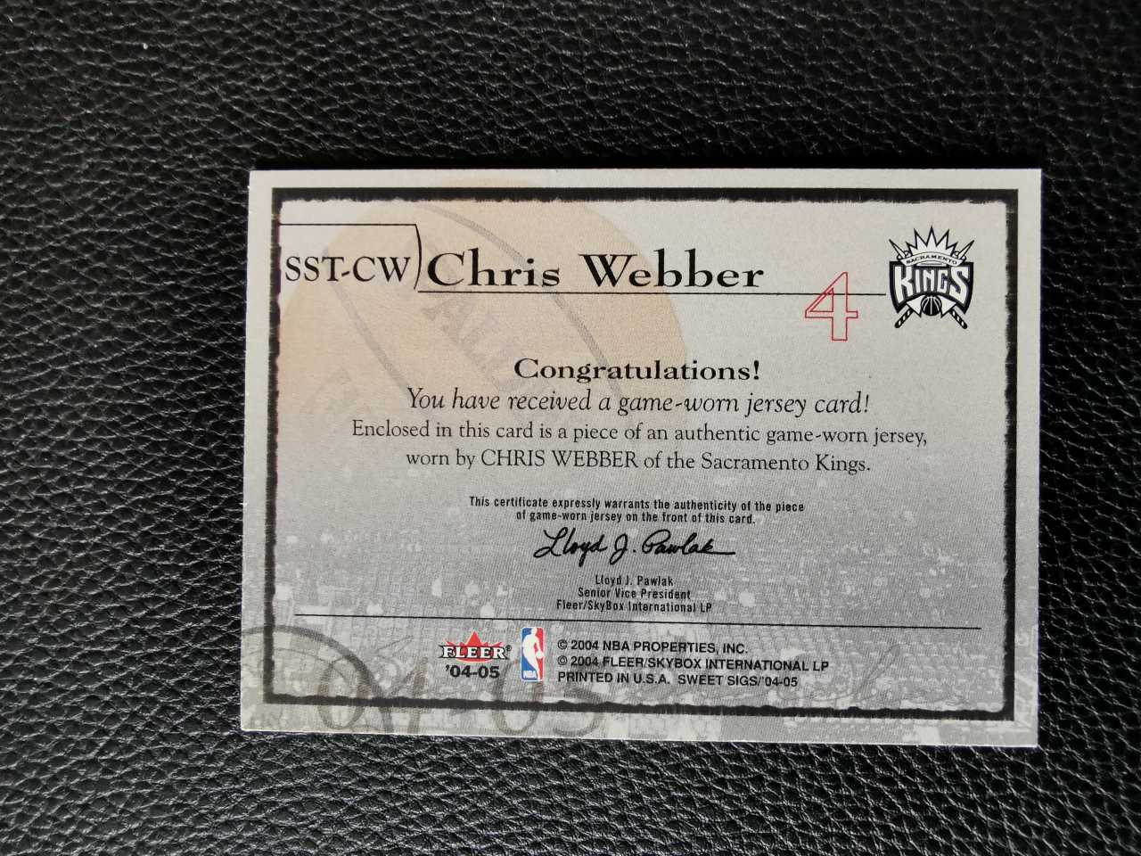 【金矿卡社】2004-05 fleer sweet sigs stitches 国王前当家 克里斯韦伯 Chris webber 落场球衣切割 进攻最华丽的大前锋 背轻印 小天