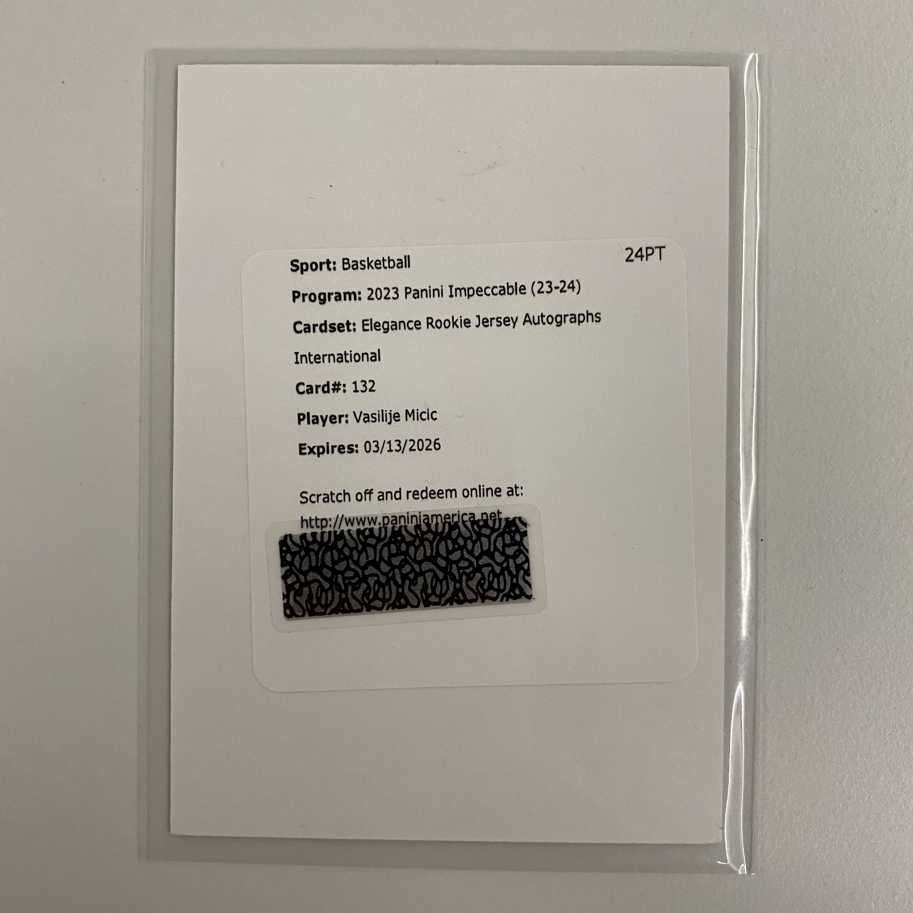 2023-24 Panini Impeccable Vasilije Micic RC 小真金 瓦里西耶 米西奇 雷霆 /88编 新秀 RPA 国际版 签字 卡签 交换版 发快递 不直接发码