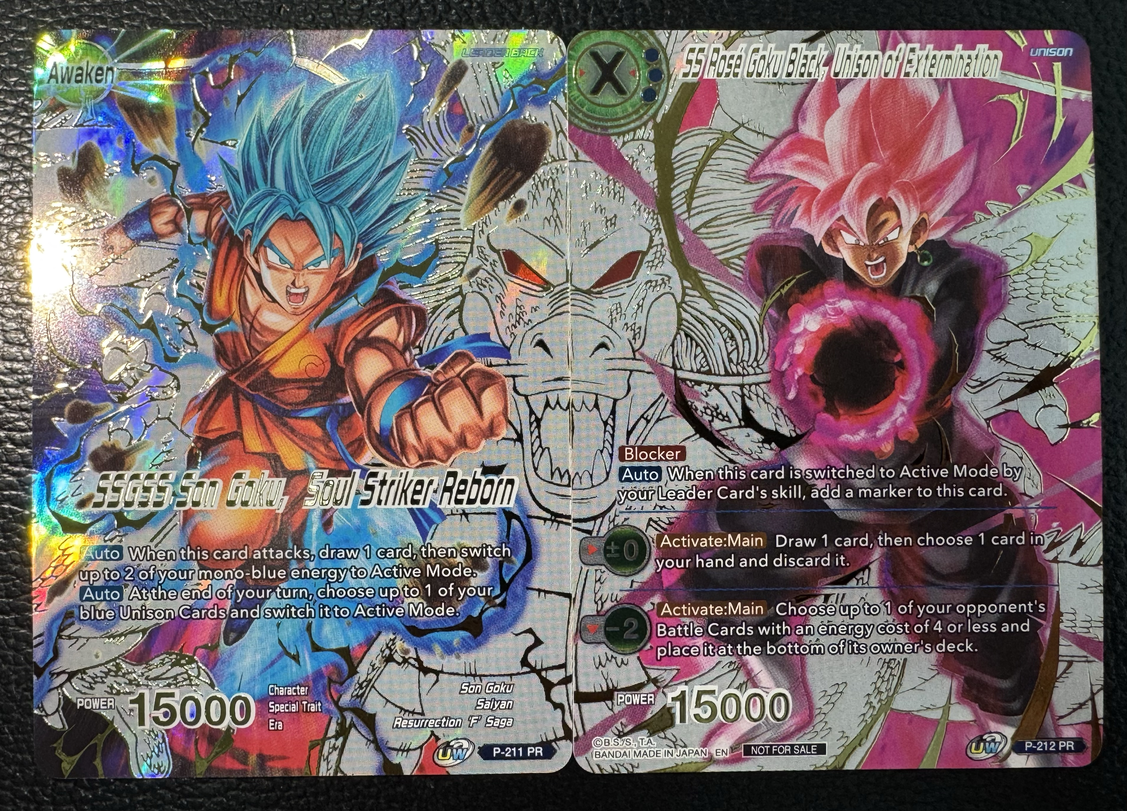 龙珠超卡牌超蓝悟空和桃红悟空闪卡 P-211/212 PR