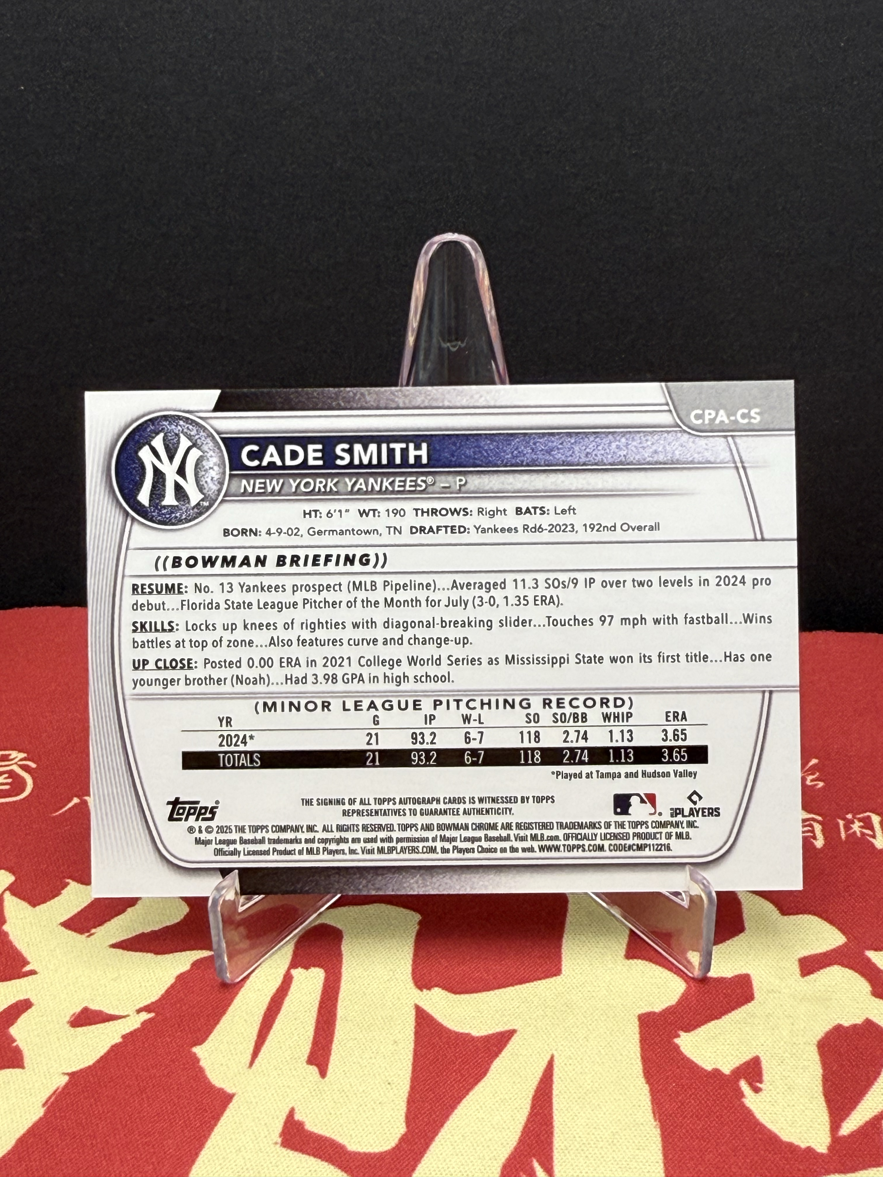 2025 Topps Bowman chrome Cade Smith RC 棒球 1st 凯德史密斯 洋基队 签字 卡签 实卡精美 专收必备 大雾投手 未来可期 刺客总