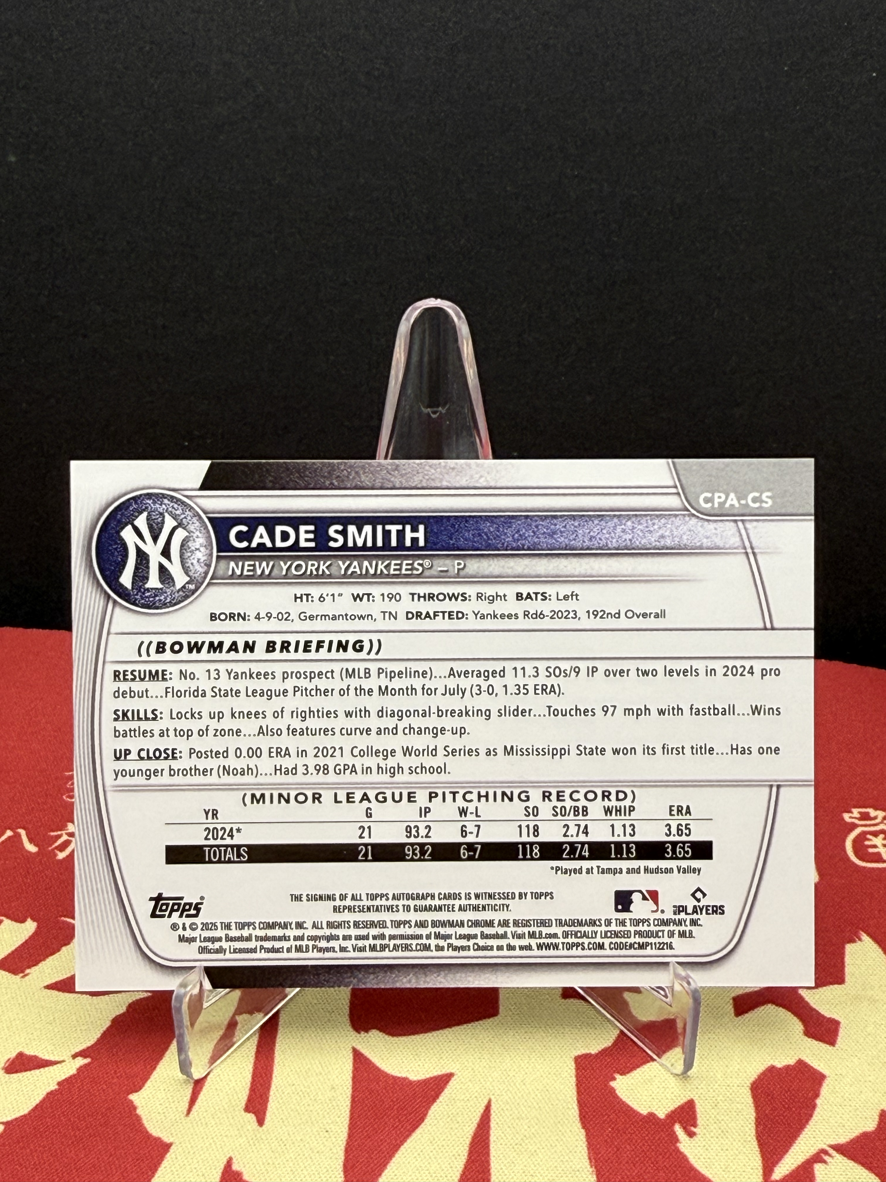 2025 Topps Bowman chrome Cade Smith RC 棒球 1st 凯德史密斯 洋基队 签字 卡签 实卡精美 专收必备 大雾投手 未来可期 刺客总