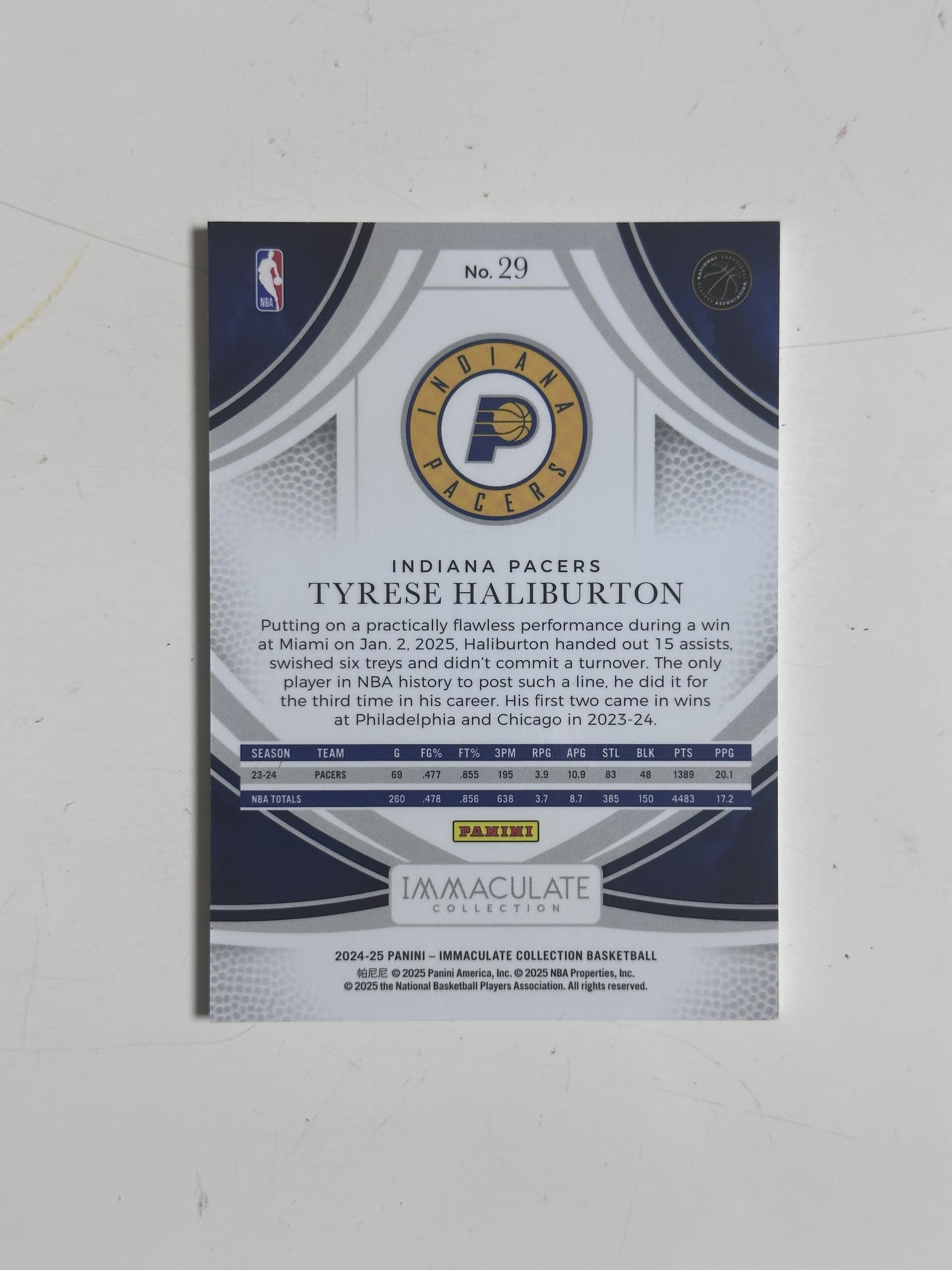 2024-25 Panini Immaculate Tyrese Haliburton 爱咪咪 步行者 泰雷塞 哈利伯顿 99编 银版 base 细节如图