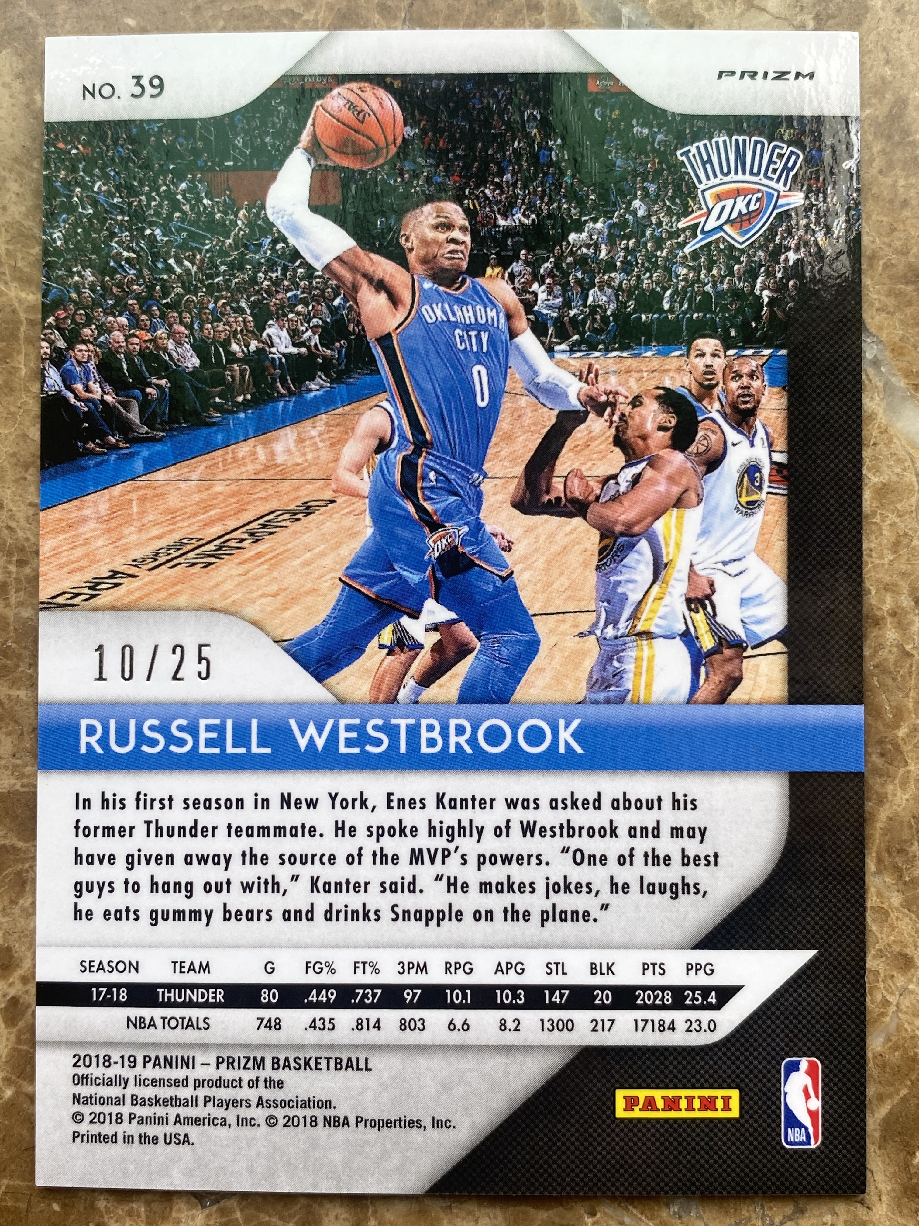 2018-19 Panini Prizm Russell Westbrook 威少 威斯布鲁克 mojo折 最值得收藏的一年 /25