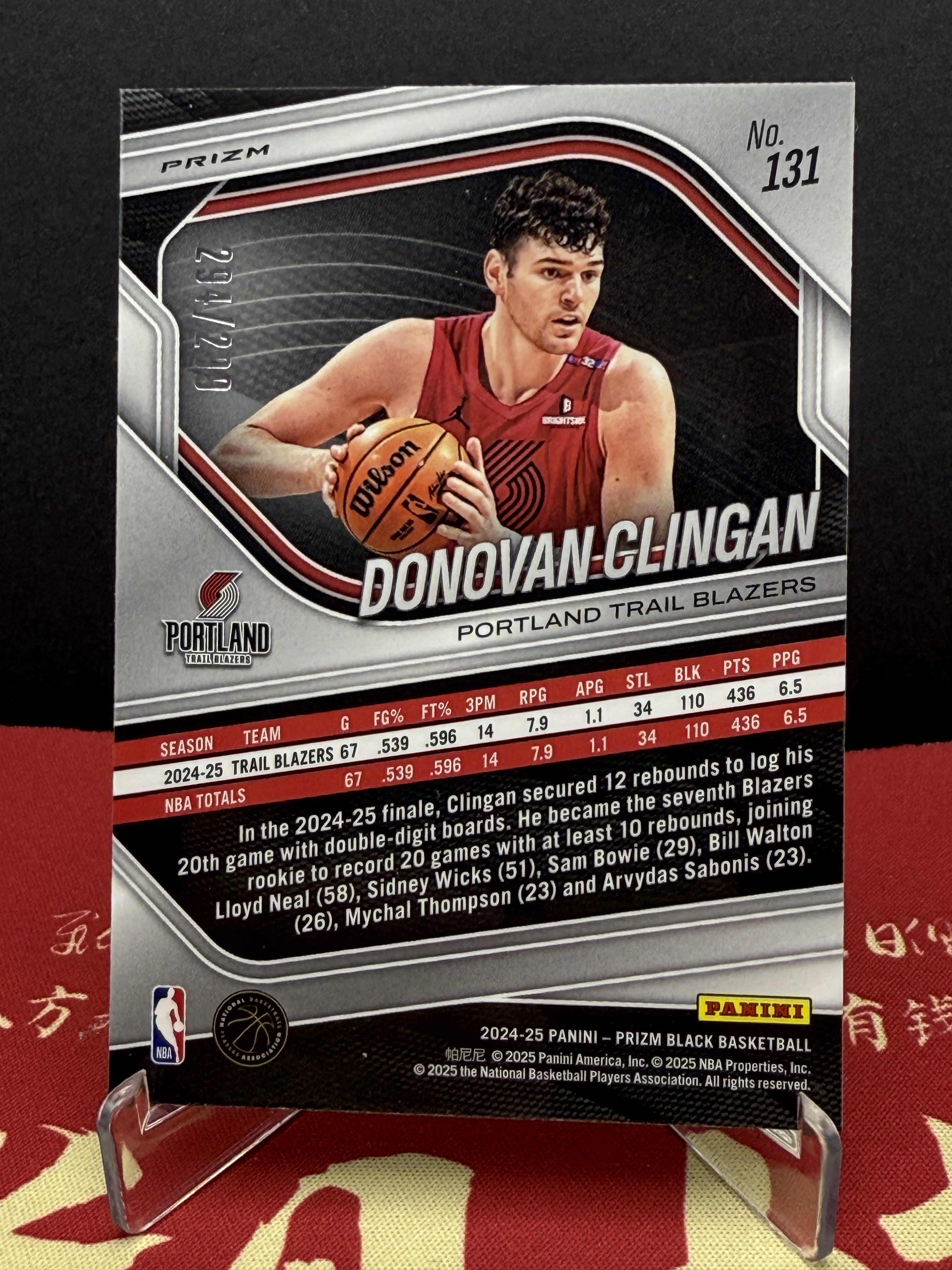 2024-25 Panini Prizm black Donovan Clingan RC 多诺万 克林根 开拓者 红折 299编 color match 实卡精美 杨瀚森队友 劳尔总 未来可期