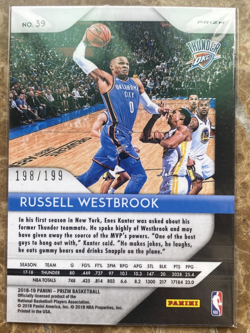 2018-19 Panini Prizm Russell Westbrook 威少 威斯布鲁克 蓝折 兰折 /199