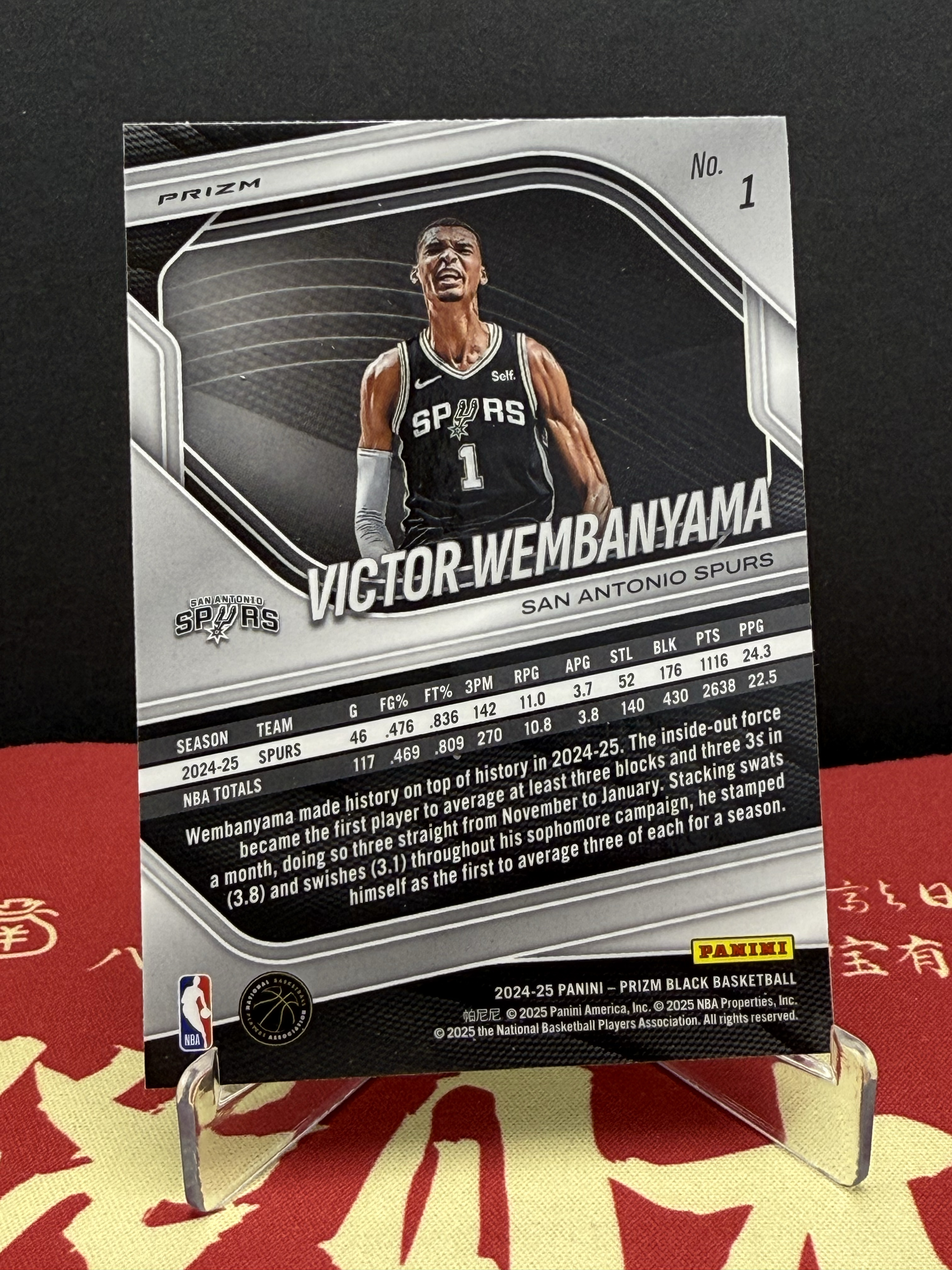 2024-25 Panini Prizm Black Victor Wembanyama 维克托 文班亚马 银折 新秀次年 外星人 圣安东尼奥马刺 细节如图