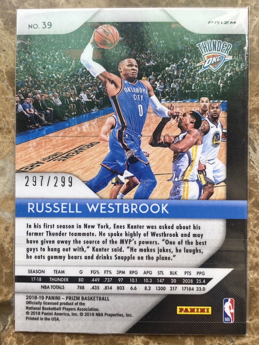 2018-19 Panini Prizm Russell Westbrook 威少 威斯布鲁克 红折 /299