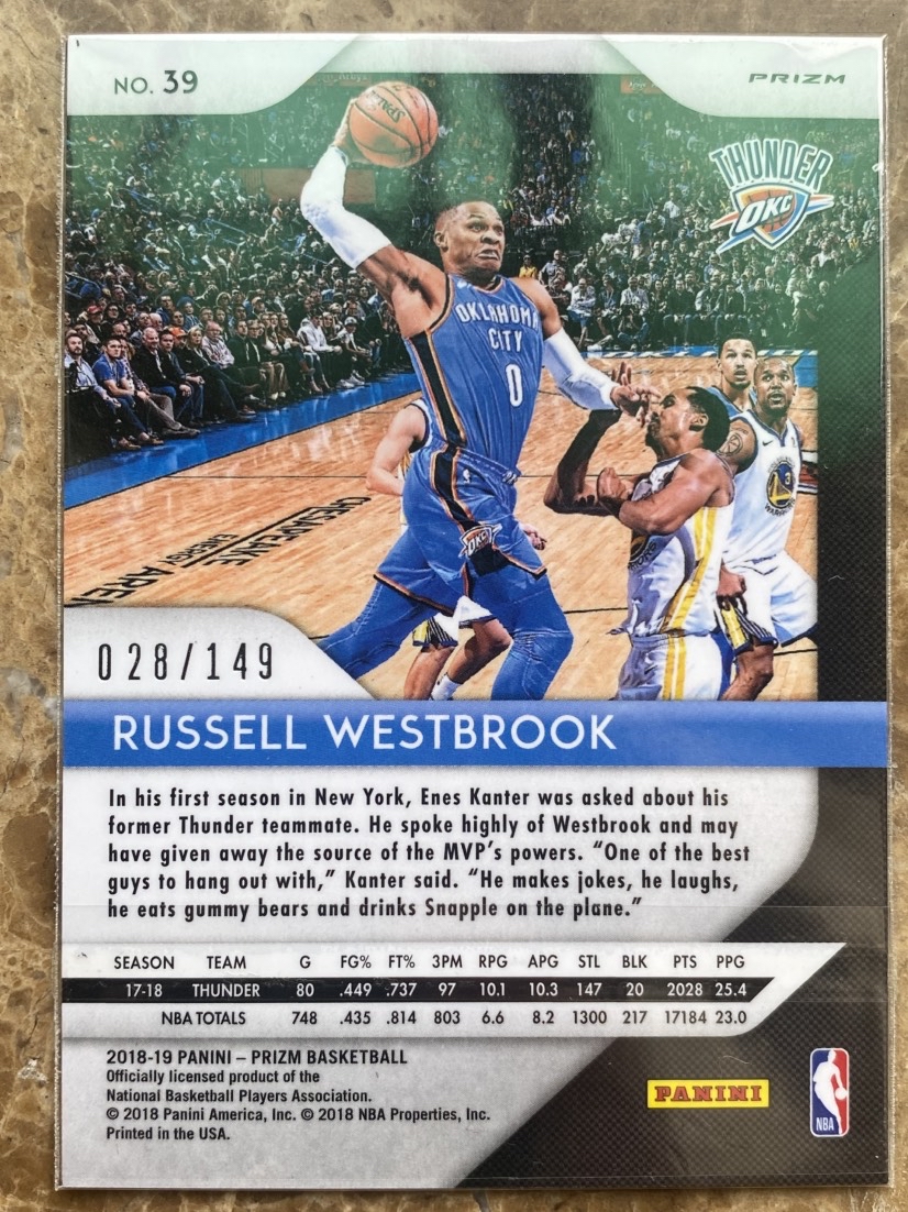 2018-19 Panini Prizm Russell Westbrook 威少 威斯布鲁克 紫碎冰折 /149