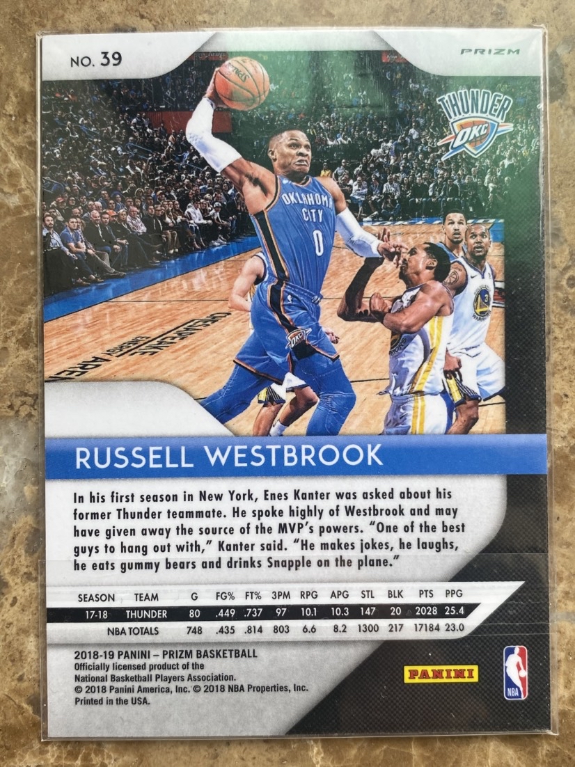 2018-19 Panini Prizm Russell Westbrook 威少 威斯布鲁克 紫波纹折射