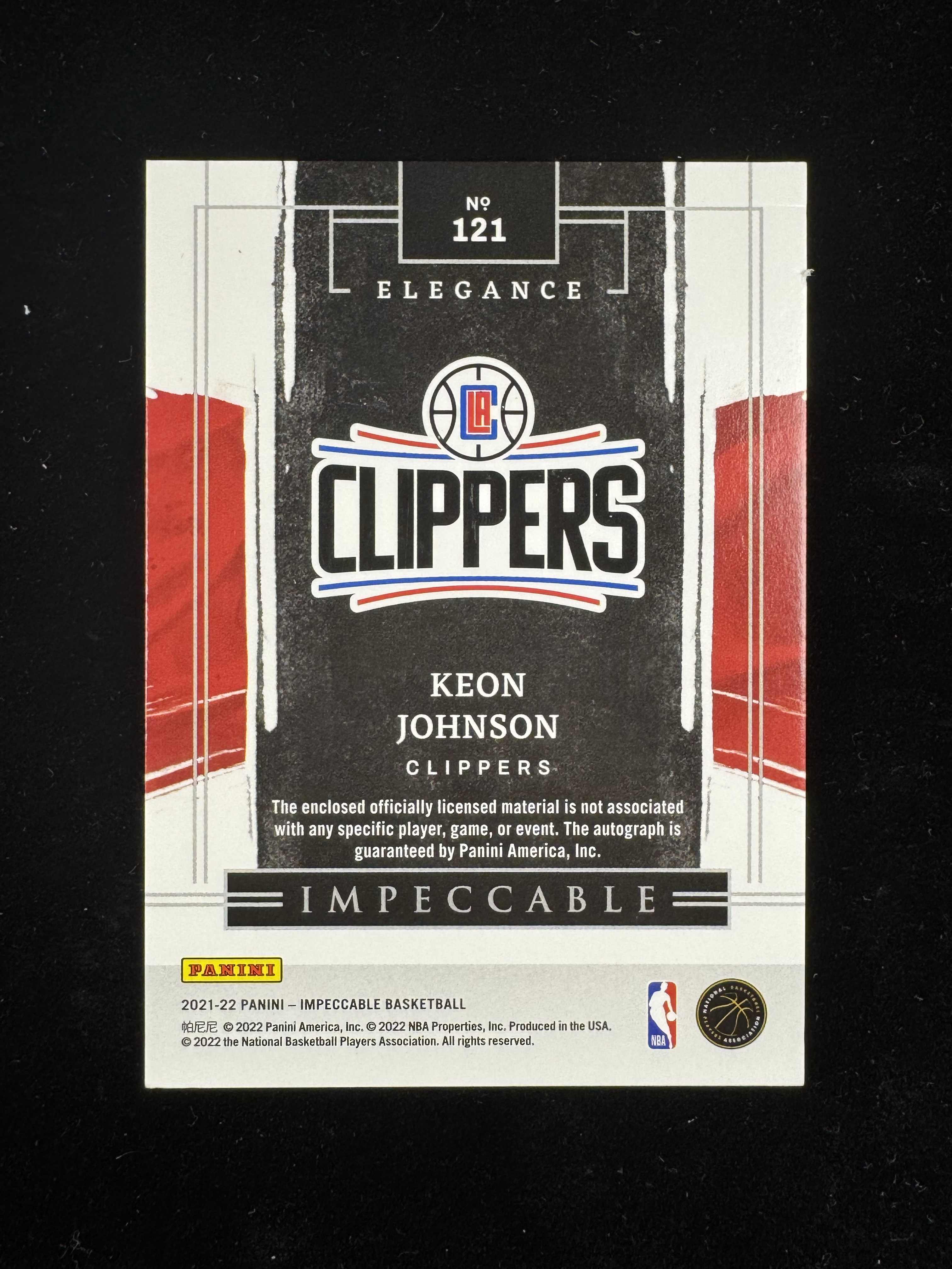 【pg免费代拍】2021-22 Panini Impeccable Keon Johnson 小真金 快船 肯昂 约翰逊 新秀RC /99编 RJA 球衣物料卡签 签字
