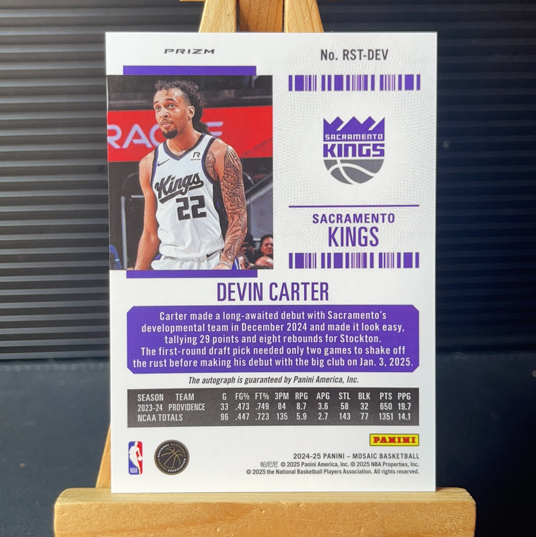 2024-25 Panini Mosaic Devin Carter RC 【雨杭拍卖】马赛克 国王 新秀 德文 卡特 签字 马赛克折 球票插入签 基哥