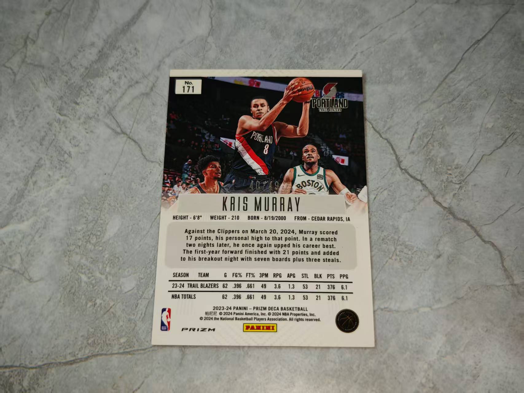 【3】卡片墨迹,卡品如图请仔细查看,一旦出价默认接受卡品(不接受一系列没拍特写,自己没看仔细不想要等理由退换货)如无图片特殊展示瑕疵均为通行品相,实卡细节可小窗联系,一般prizm optic 等系列薄卡的小划痕印刷线,国宝IMM等系列厚卡的小白边小白角翘角钝角等,都属于通行品相。发货之后不退不换,介意者请勿拍。