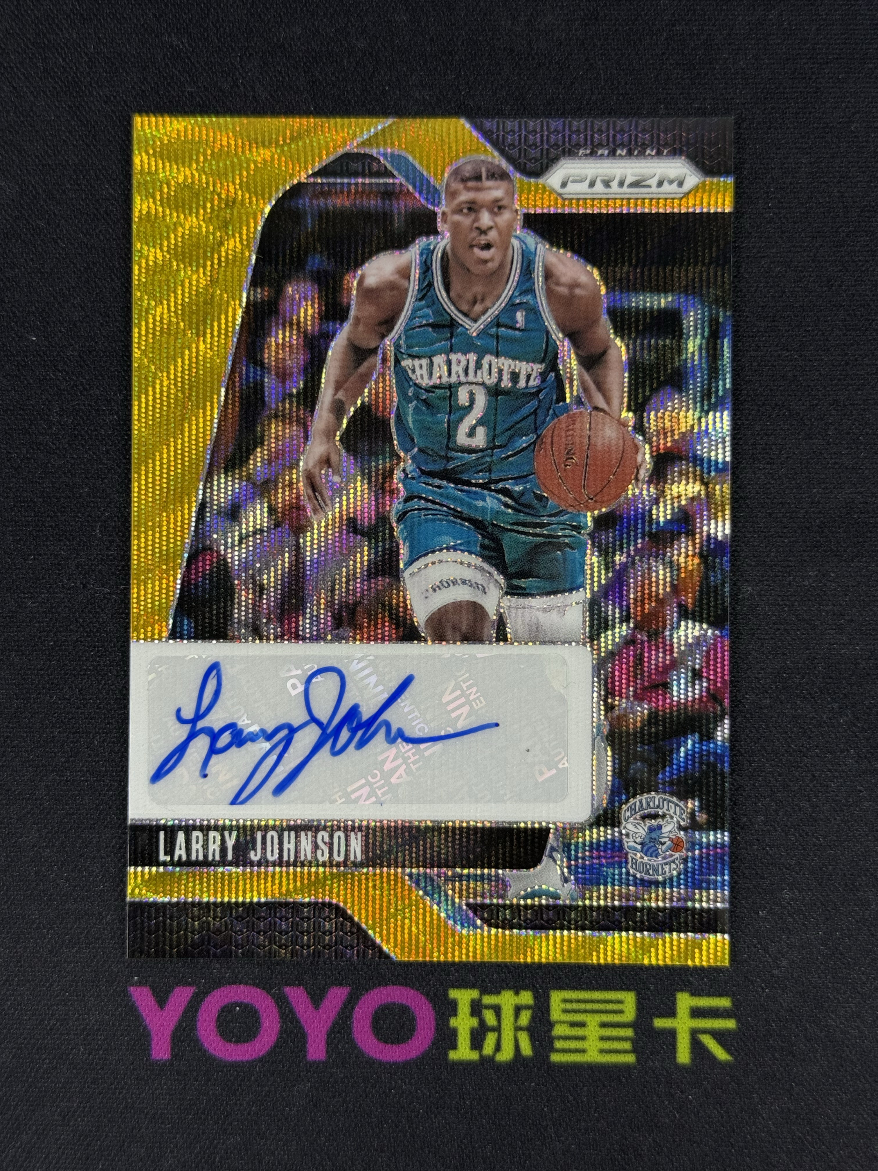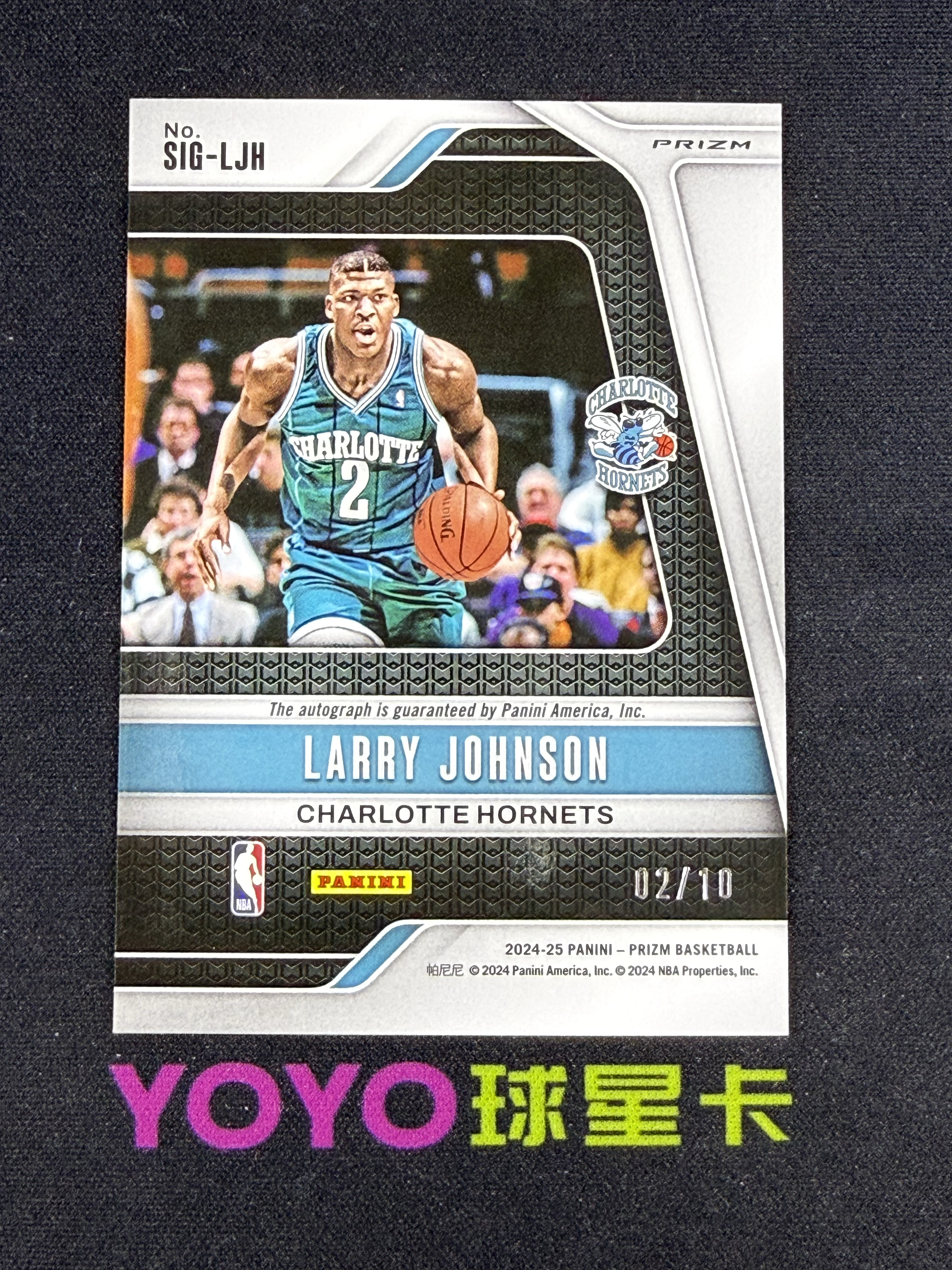 2024-25 Panini Prizm Larry Johnson 黄蜂 拉里 约翰逊 大妈 签字 黑金波纹 2/10编 同背 卡品如图【YOYO代卖】