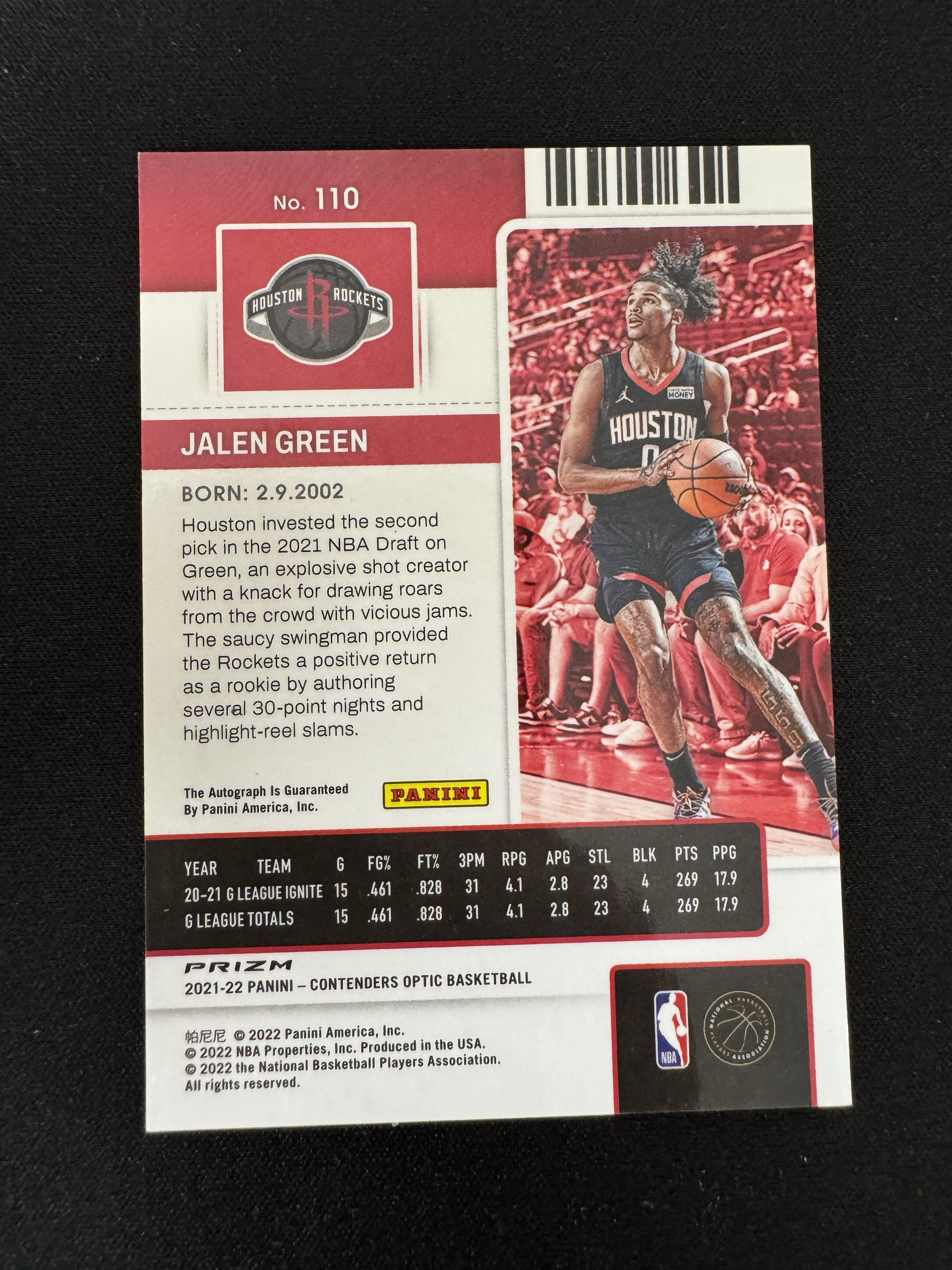 2021-22 Panini Contenders Optic Jalen Green RC 杰伦 格林 火箭 球票 optic 银折 正新秀 rookie 卡签 签字