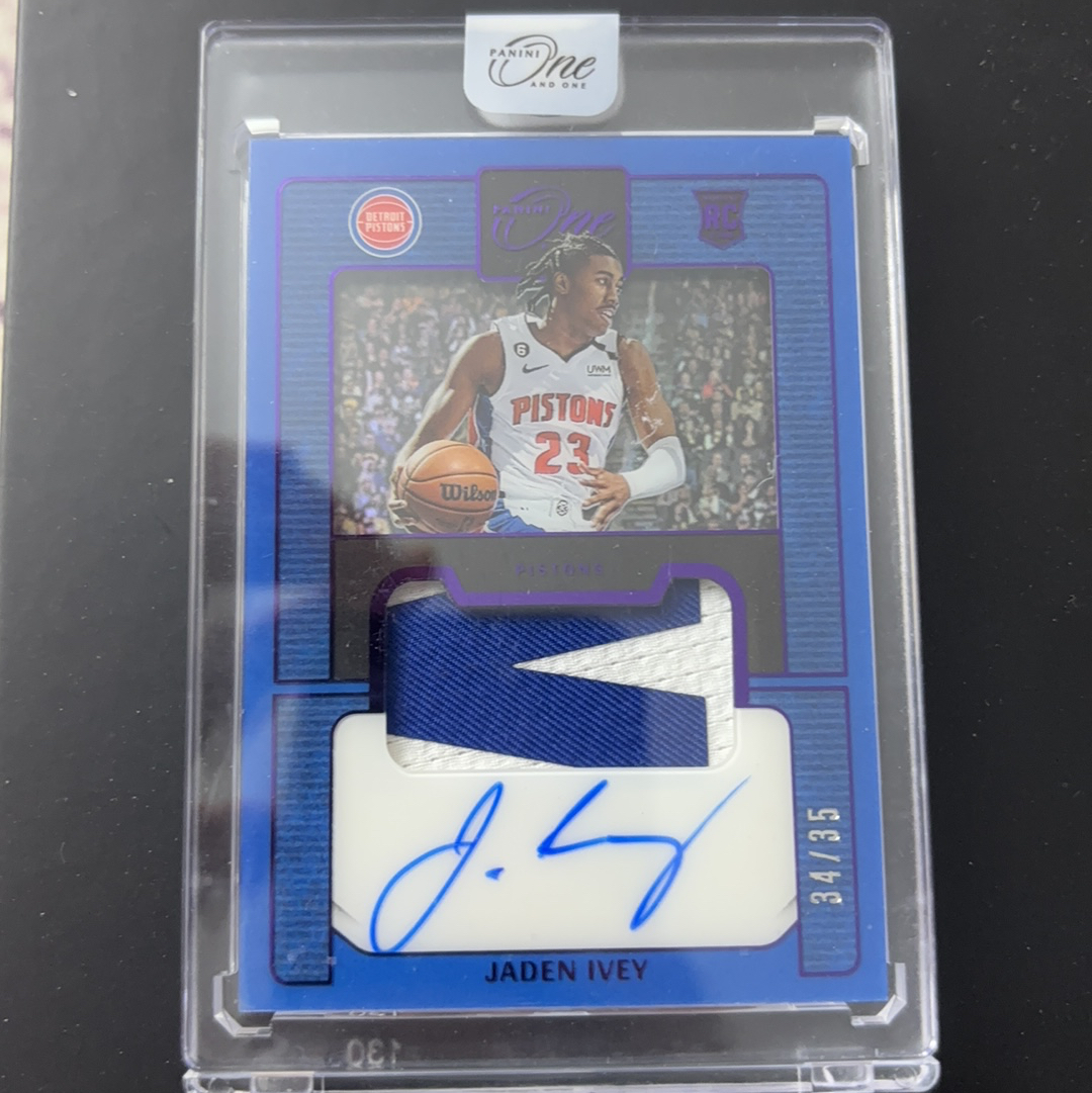 2022-23 Panini One and One Jaden Ivey RC 【星锐客拍卖】oao 活塞 新秀 杰登 艾维 rpa 物料 卡签签字 34/35编 原封砖 不累计 卡品如图 墨迹如图
