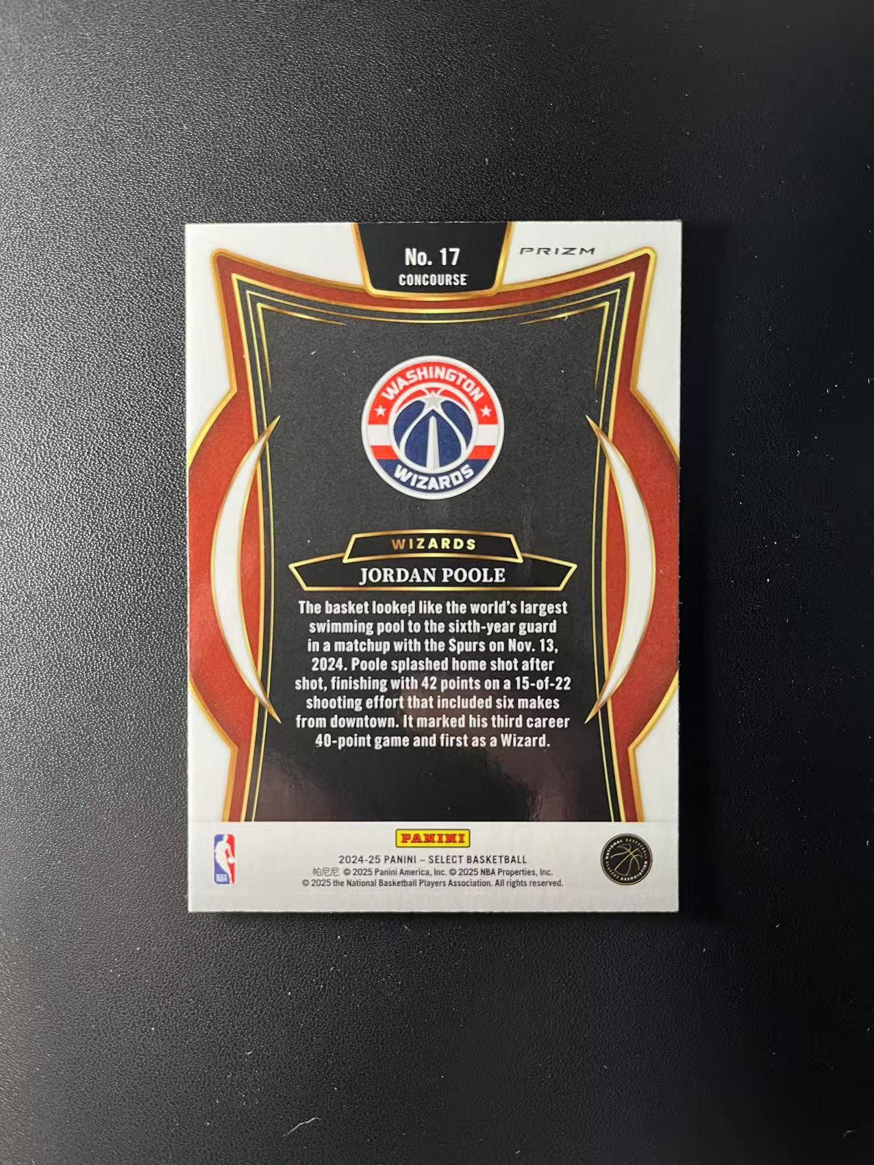 2024-25 Panini Select Jordan Poole 奇才 乔丹 普尔 普洱茶 Select系列 三色波纹折 折射 No.17 一级 折射 特卡 卡品如图 未来可期 Gn