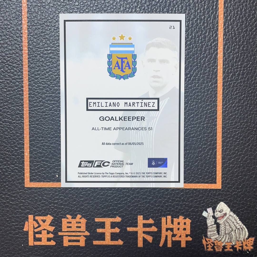 (怪兽拍卖) GSW-G07 2025 Topps Focus Argentina Emiliano Martinez 阿根廷聚焦队盒 大马丁 马丁内斯 10编 黑折 卡品如图