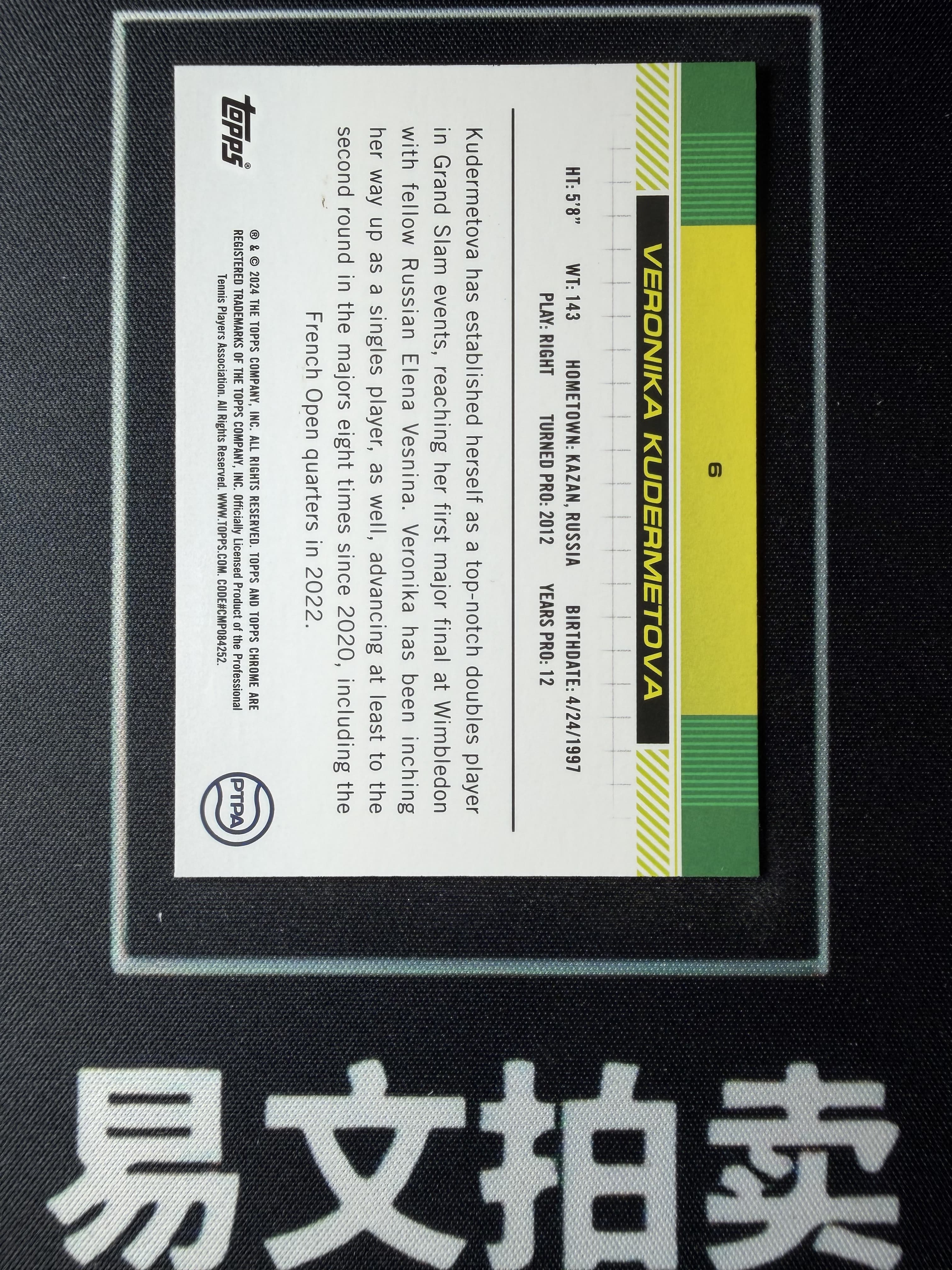 【易文拍卖 超级回款】2024 Topps Chrome 网球 VERONIKA KUDERMETOVA 维罗妮卡 库德梅托娃 1st 新秀 062/399编 青折