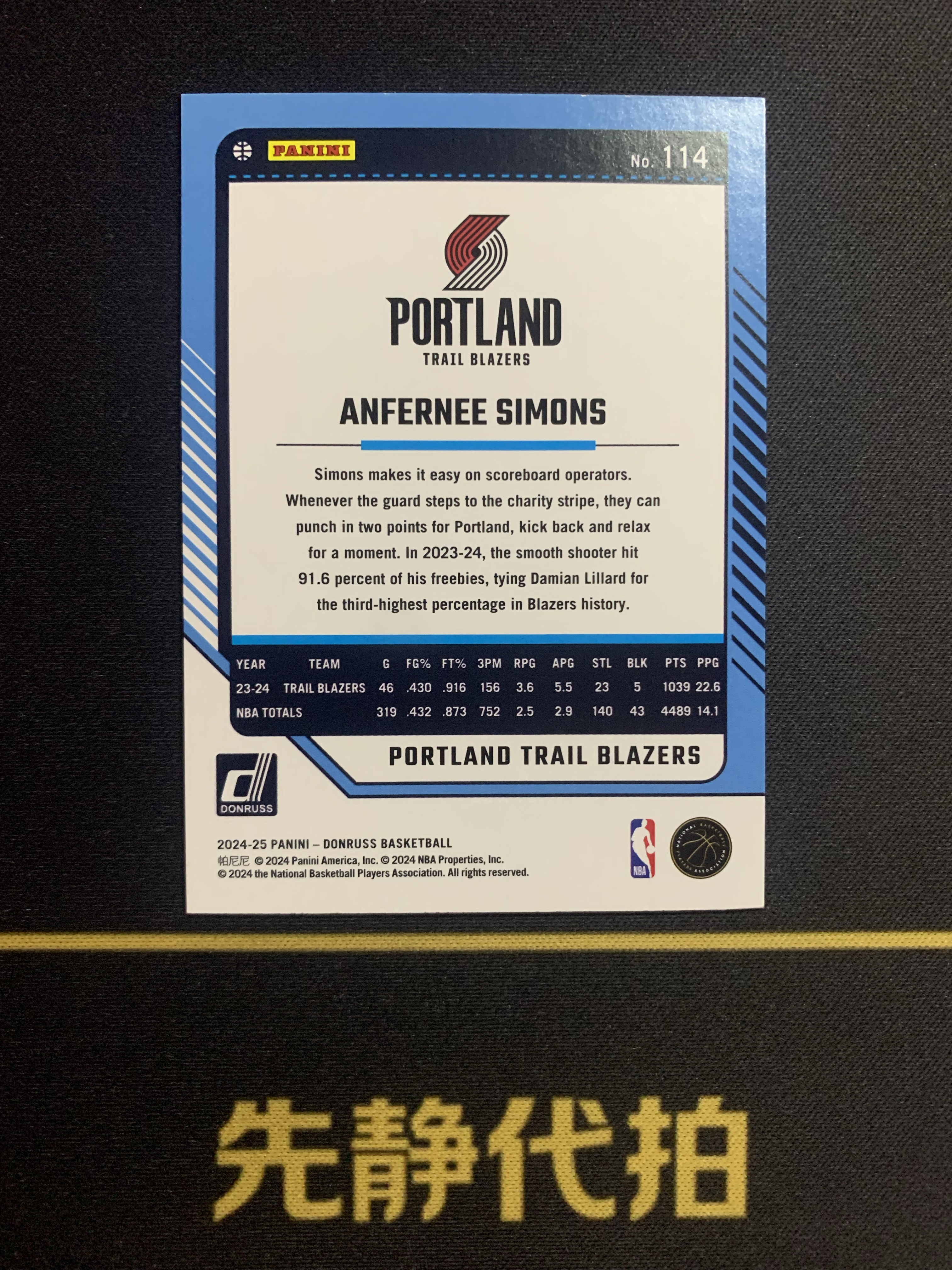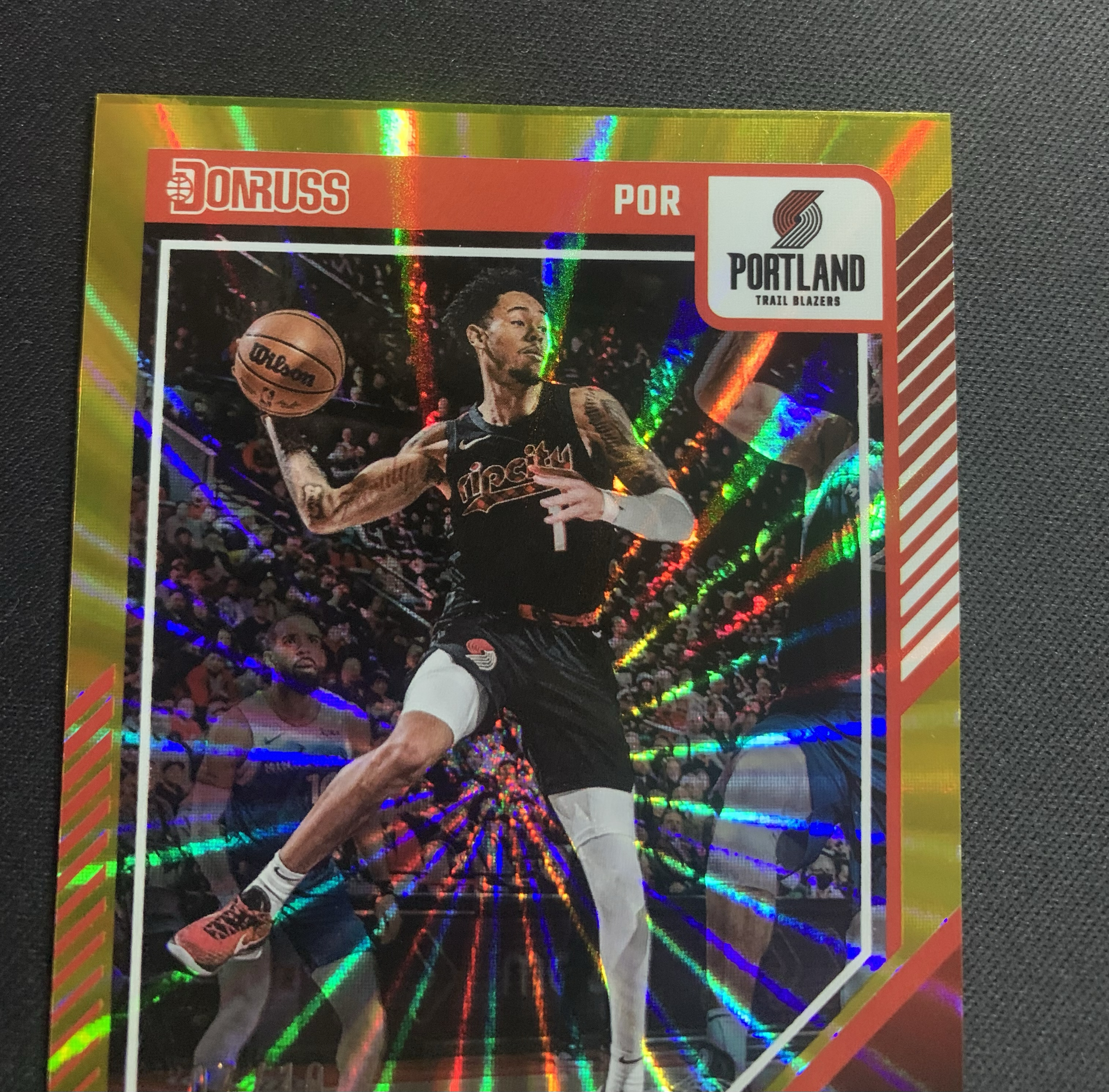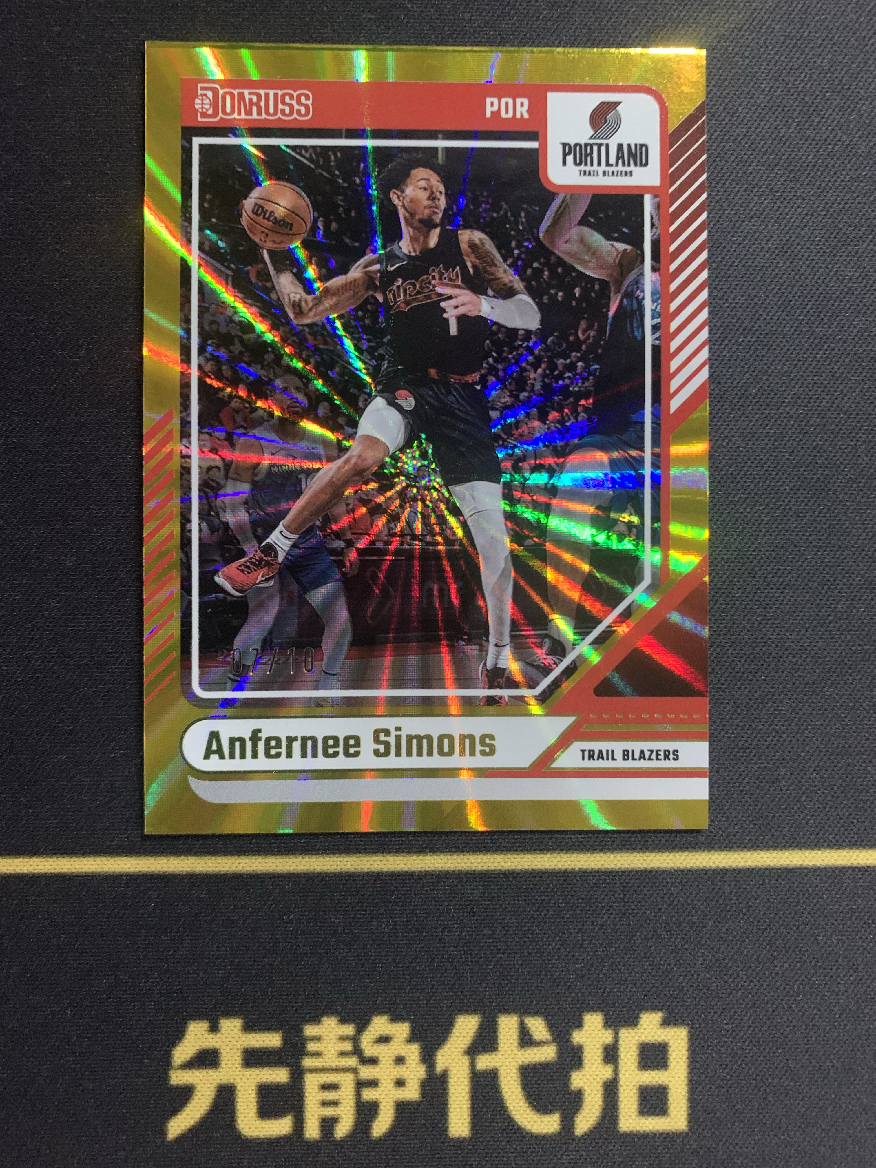 2024-25 Panini Donruss Anfernee Simons 【先静代拍】杜蕾斯 开拓者 安芬尼 西蒙斯 10编 金佛光折 金折 折射 卡品瑕疵如图 (唐总)