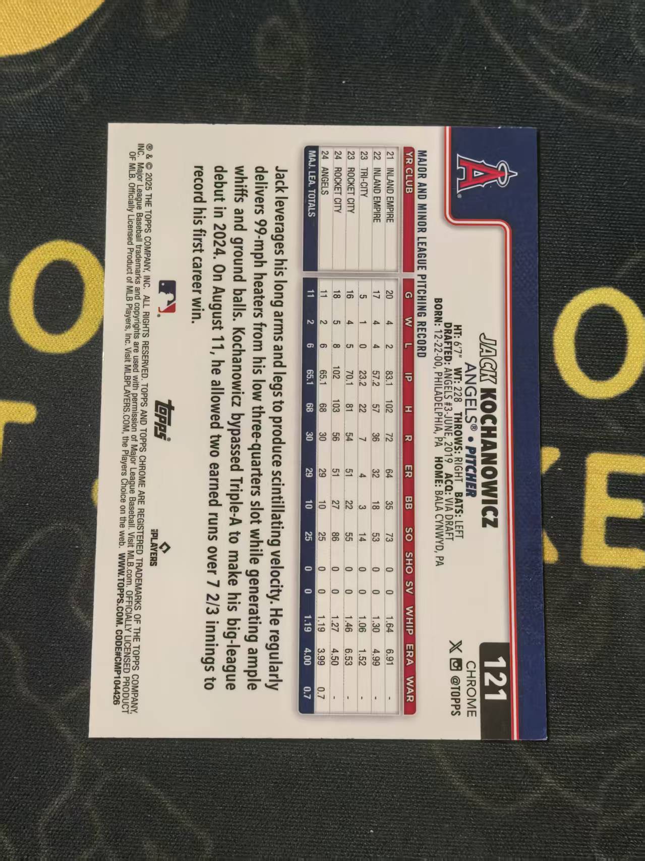 2025 Topps Chrome Jack Kochanowicz 科哈诺维茨 新秀 洛杉矶天使 179/299编 青折 收藏必备 专收必备