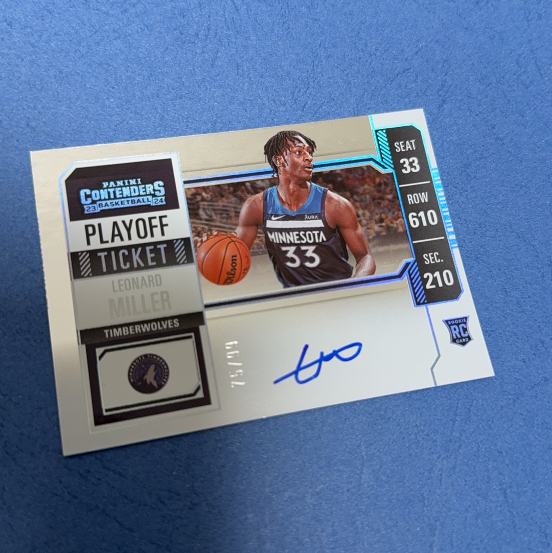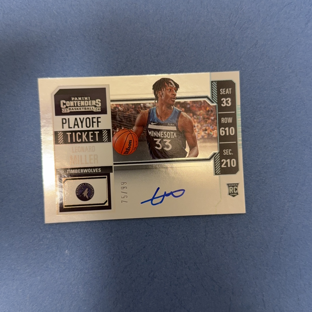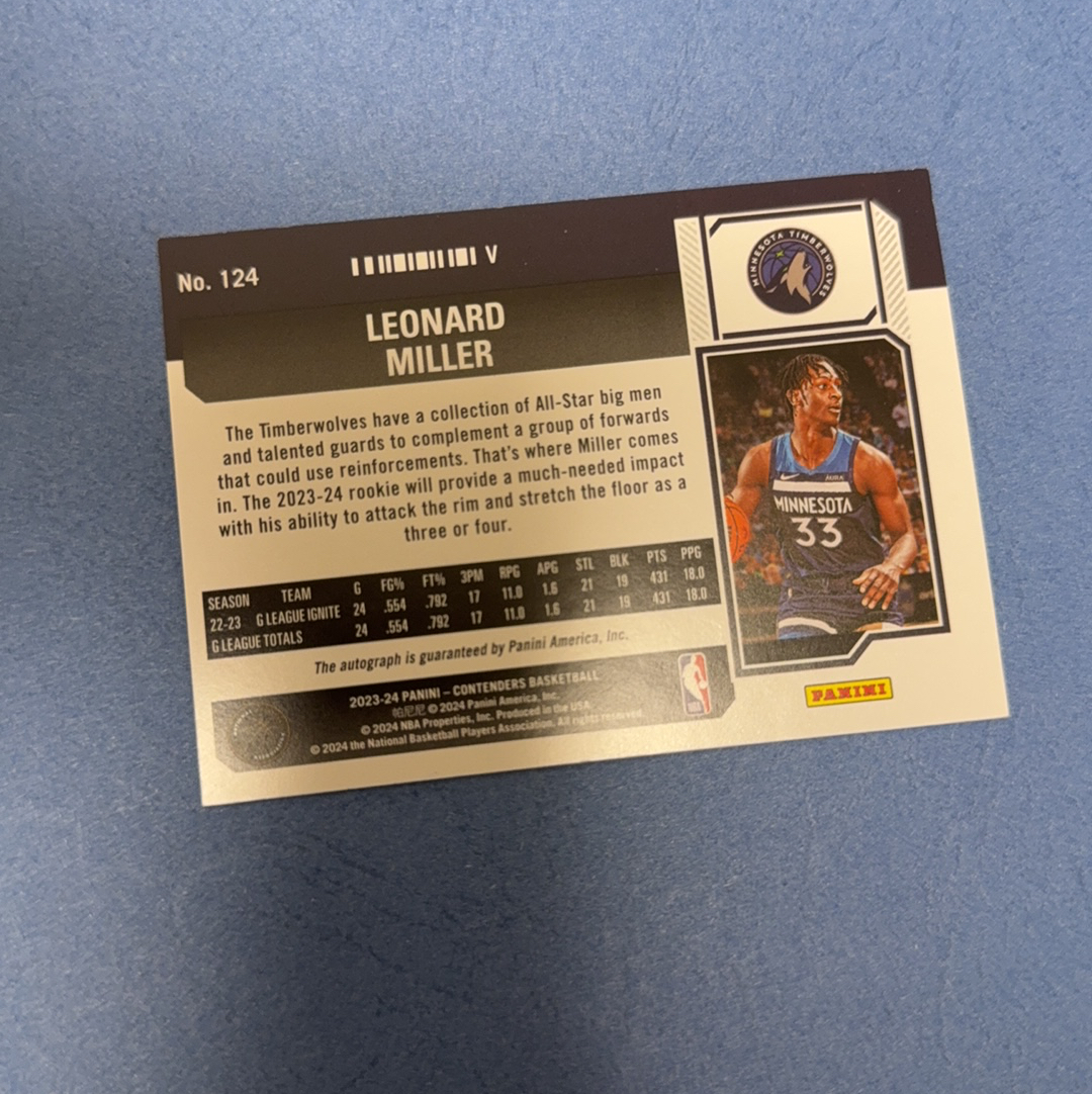 2023-24 Panini Contenders Leonard Miller RC 球票系列 新秀RC 伦纳德 米勒 森林狼 卡签签字 新秀签 变化版 99编