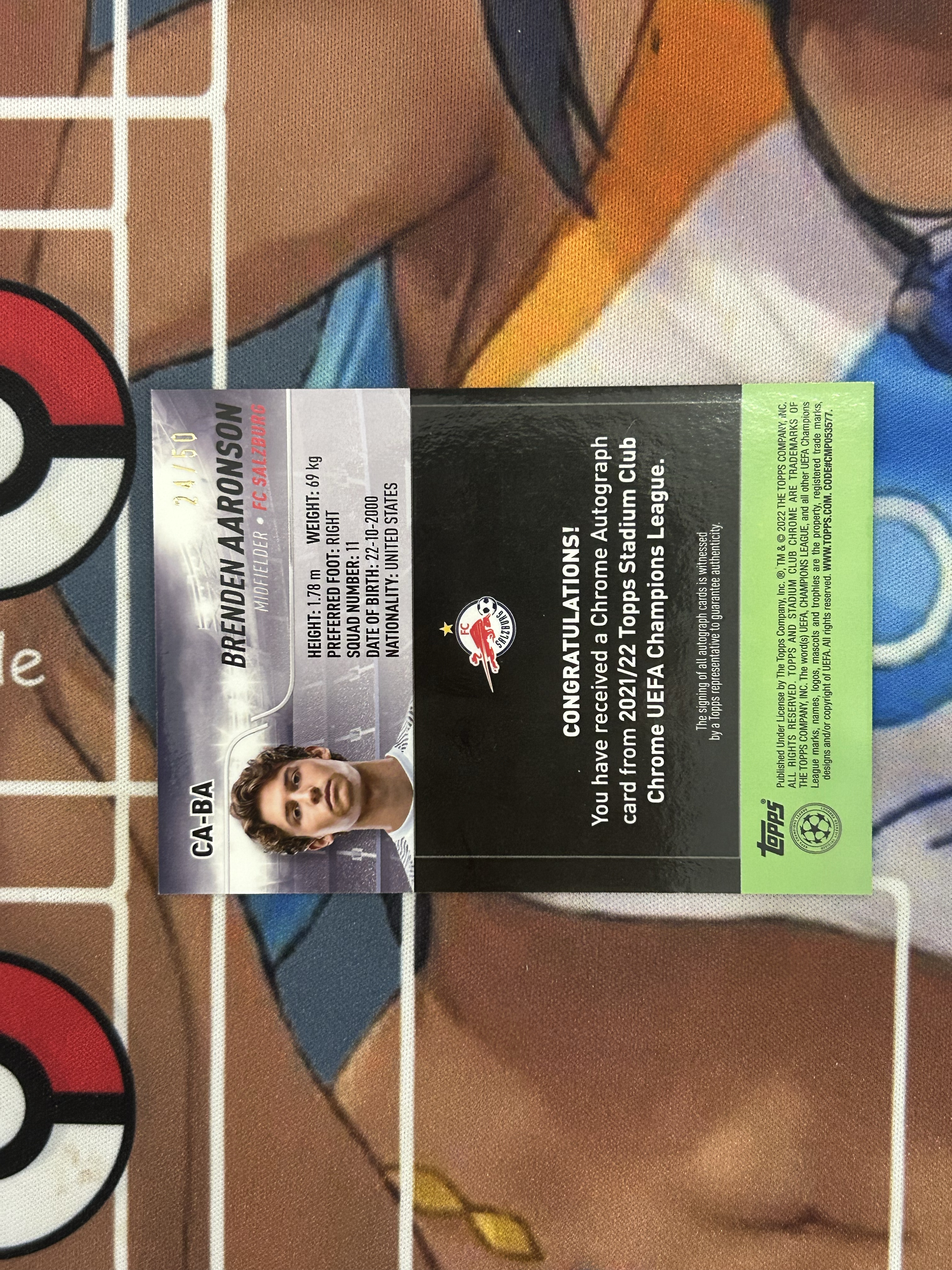 2022 Topps Stadium Club Chrome Brenden Aaronson 布兰登 阿伦森 萨尔斯堡红牛 银折 欧冠竞技场 折射 金折 50编