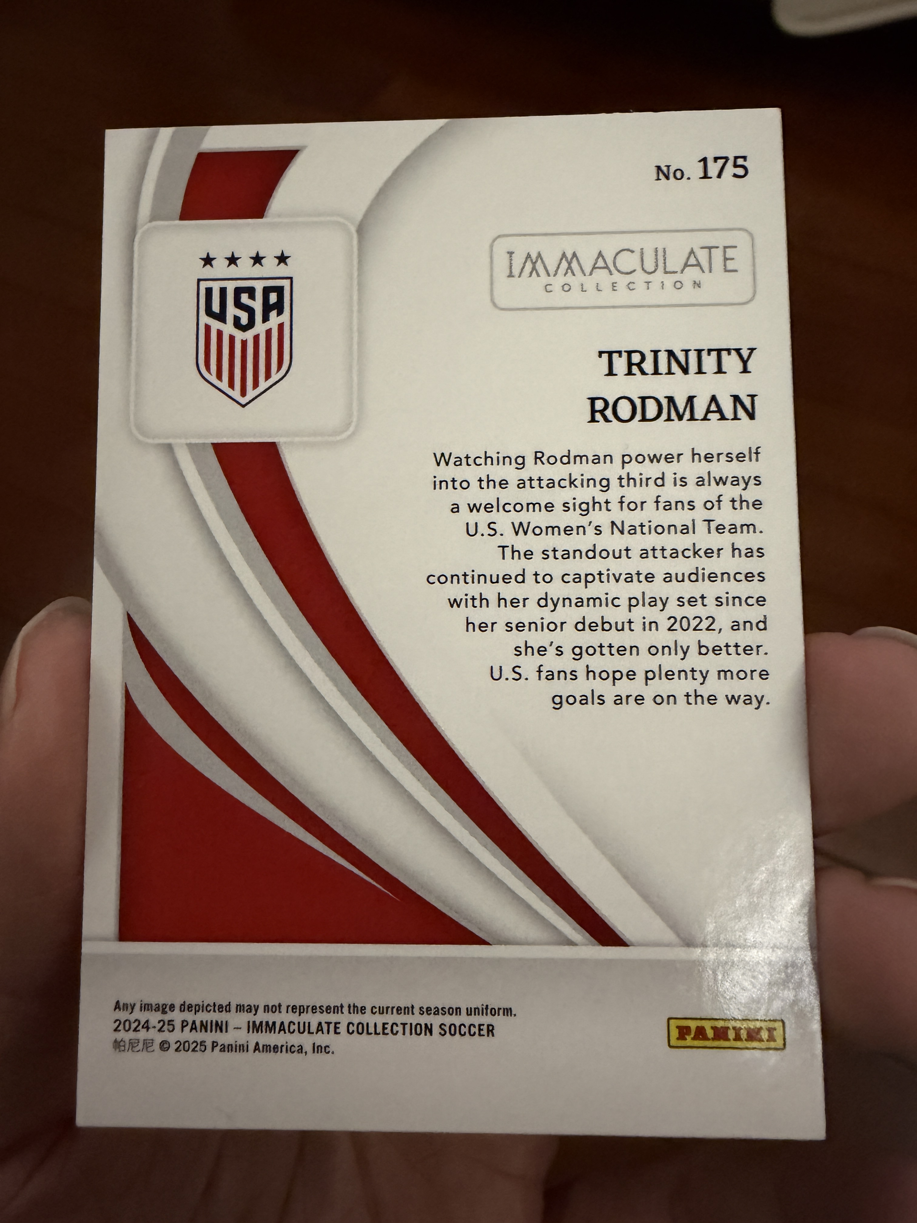 2024-25 Panini Immaculate Trinity Rodman 爱咪咪 美国 女足 特里尼蒂 罗德曼 选图变化版 10/26编 细节如图 收藏必备 (jojo7818)