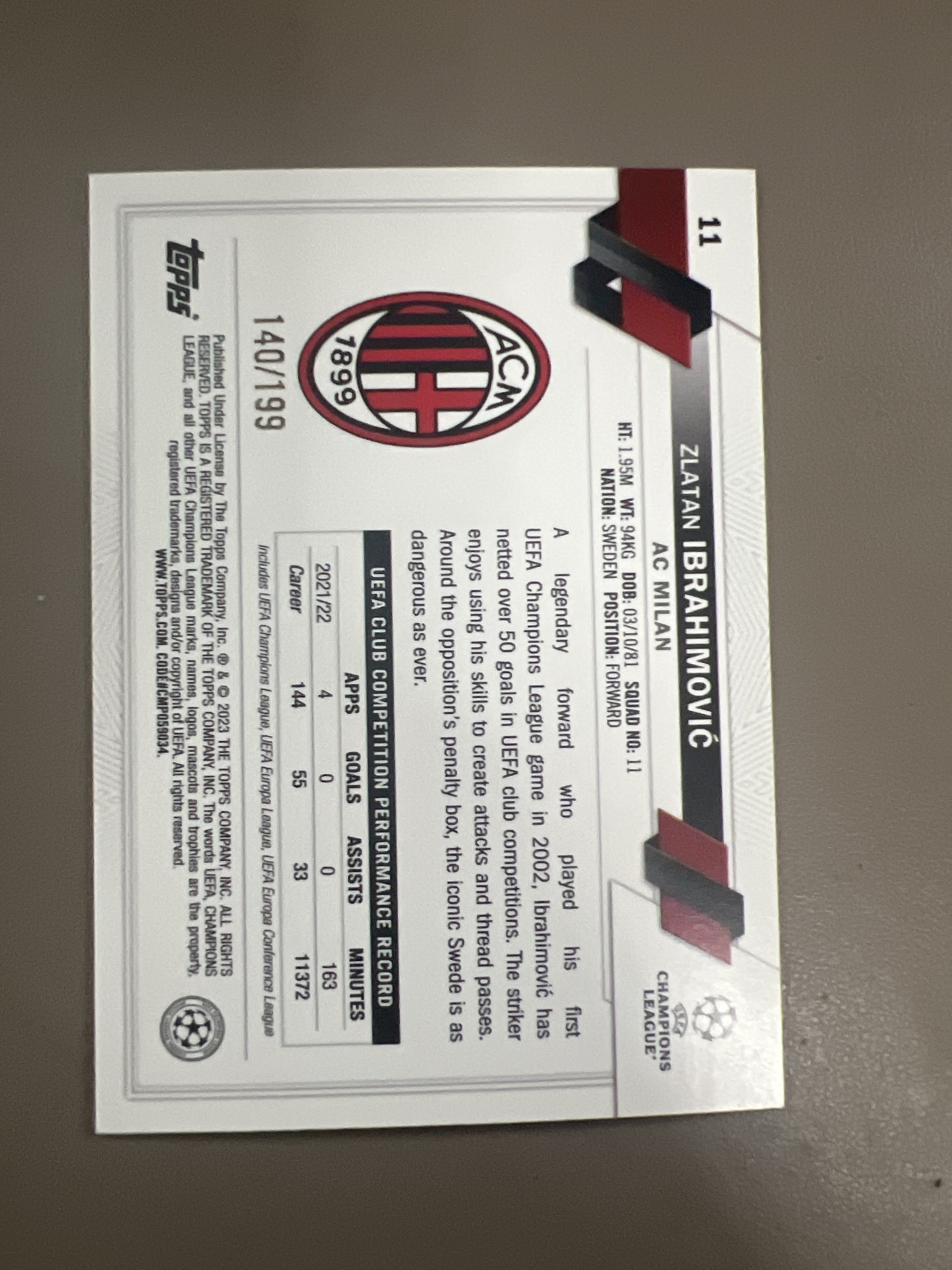 2023 Topps UCC Zlatan Ibrahimovic 伊布拉希莫维奇 伊布 绿折 199编 欧战 米兰 曼联 巴黎 爆爆康11 不保卡品