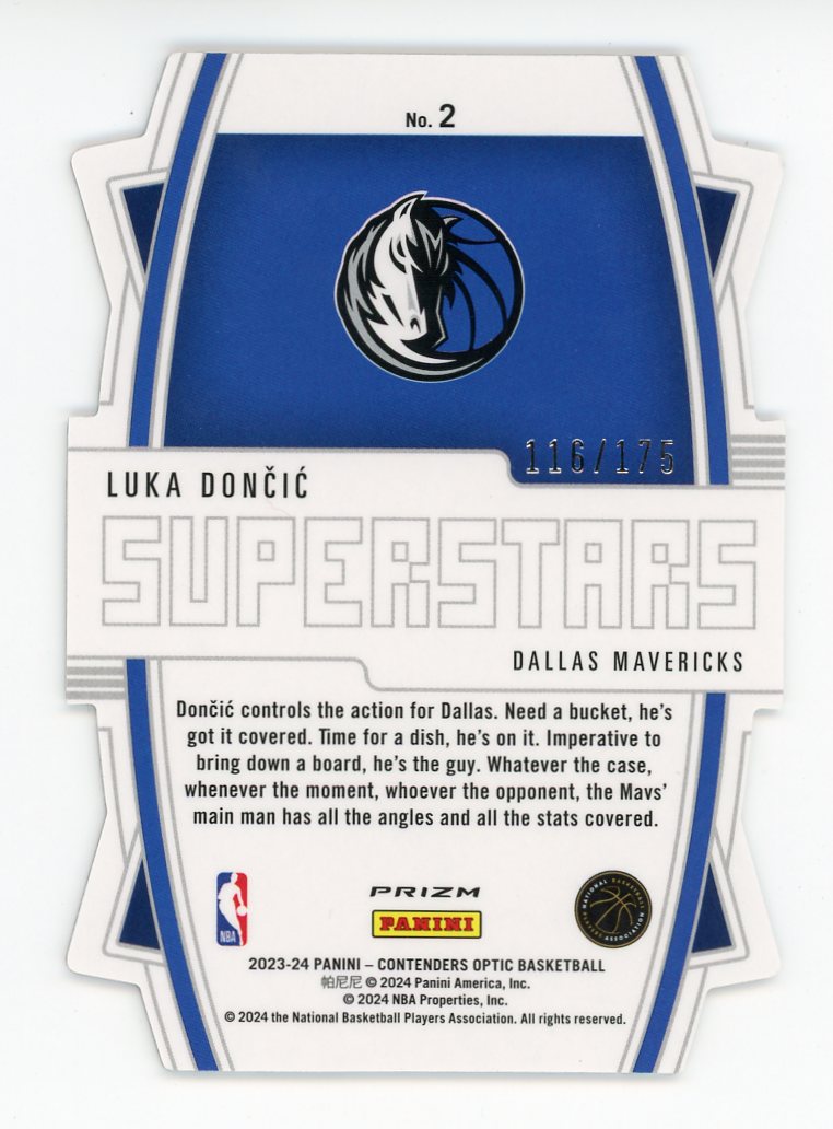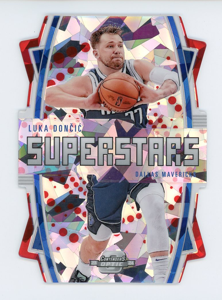 2023-24 Panini Contenders Optic Basketball Luka Doncic Superstars Red Cracked Ice Prizm #'ed 116/175