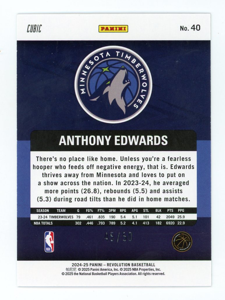 2024-25 Panini Revolution Basketball Anthony Edwards Base Cubic #'ed 45/50