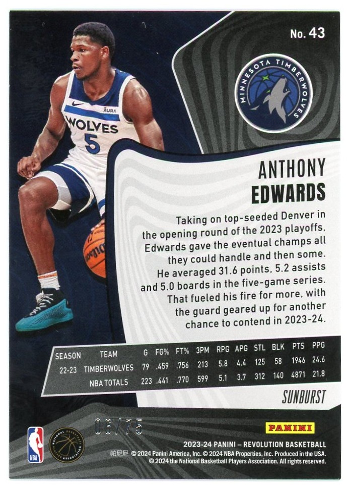 2023-24 Panini Revolution Basketball Anthony Edwards Base Sunburst #'ed 06/75