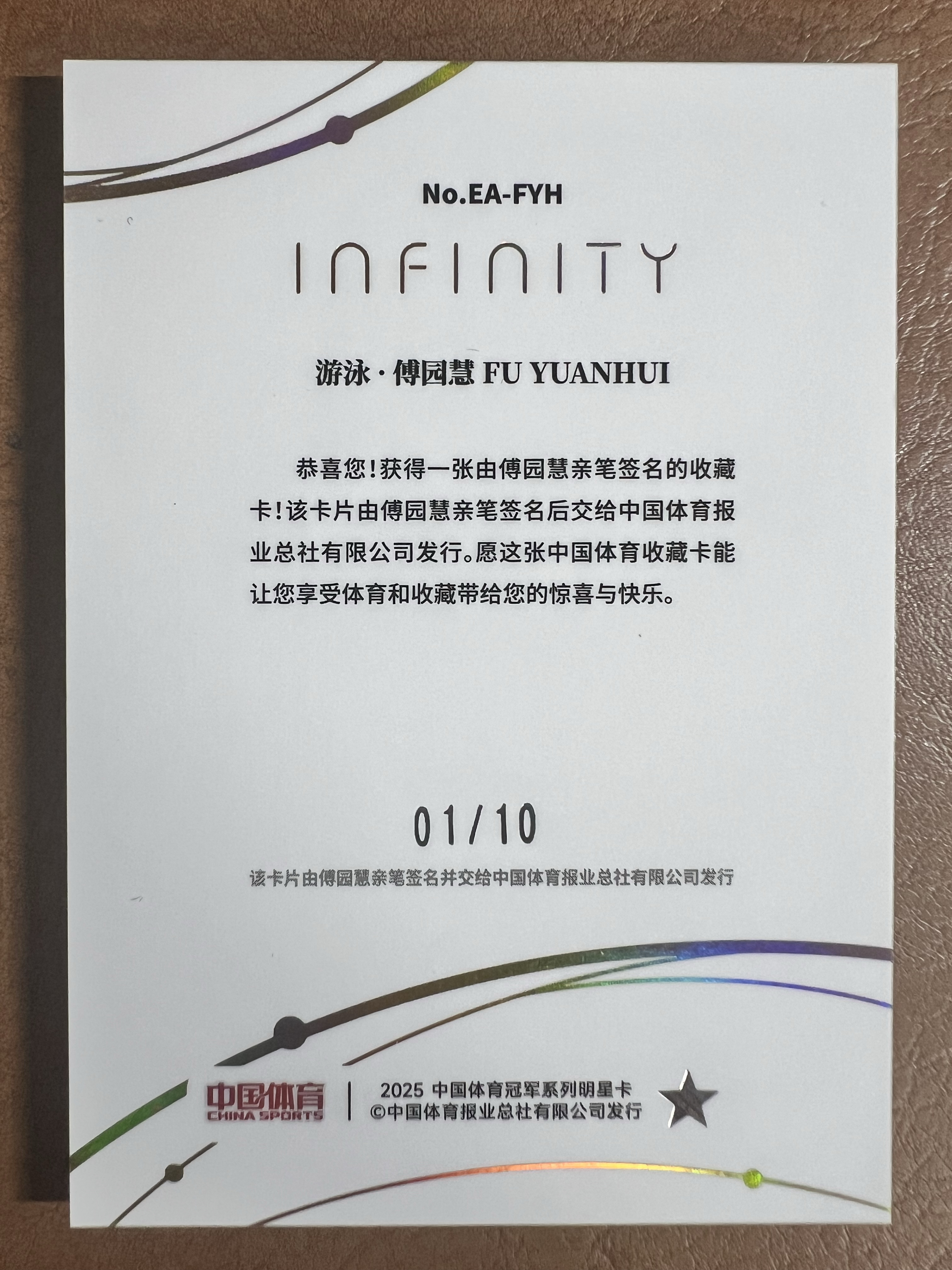 2025 奇卡 QICA 中国体育 无限 傅园慧 /泰欧气卡社/ 中体 Infinity 无限 游泳 傅园慧 低编 签字 01/10编 首编 字迹完美 卡品如图