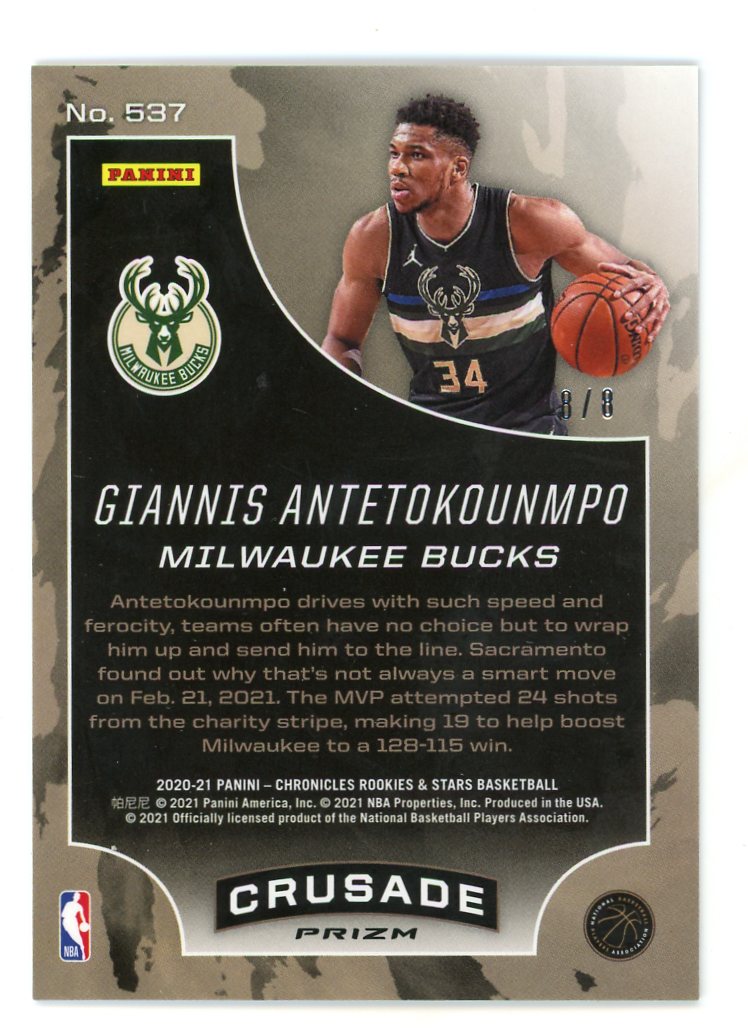 2020-21 Panini Chronicles Rookies & Stars Basketball Giannis Antetokounmpo Base Crusade Lucky Envelopes Prizm #'ed 8/8