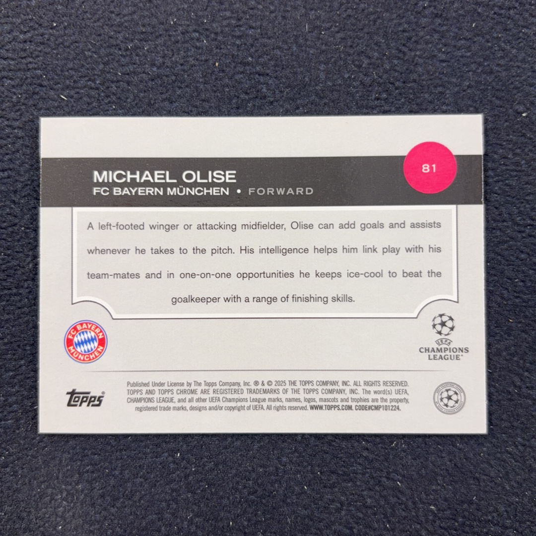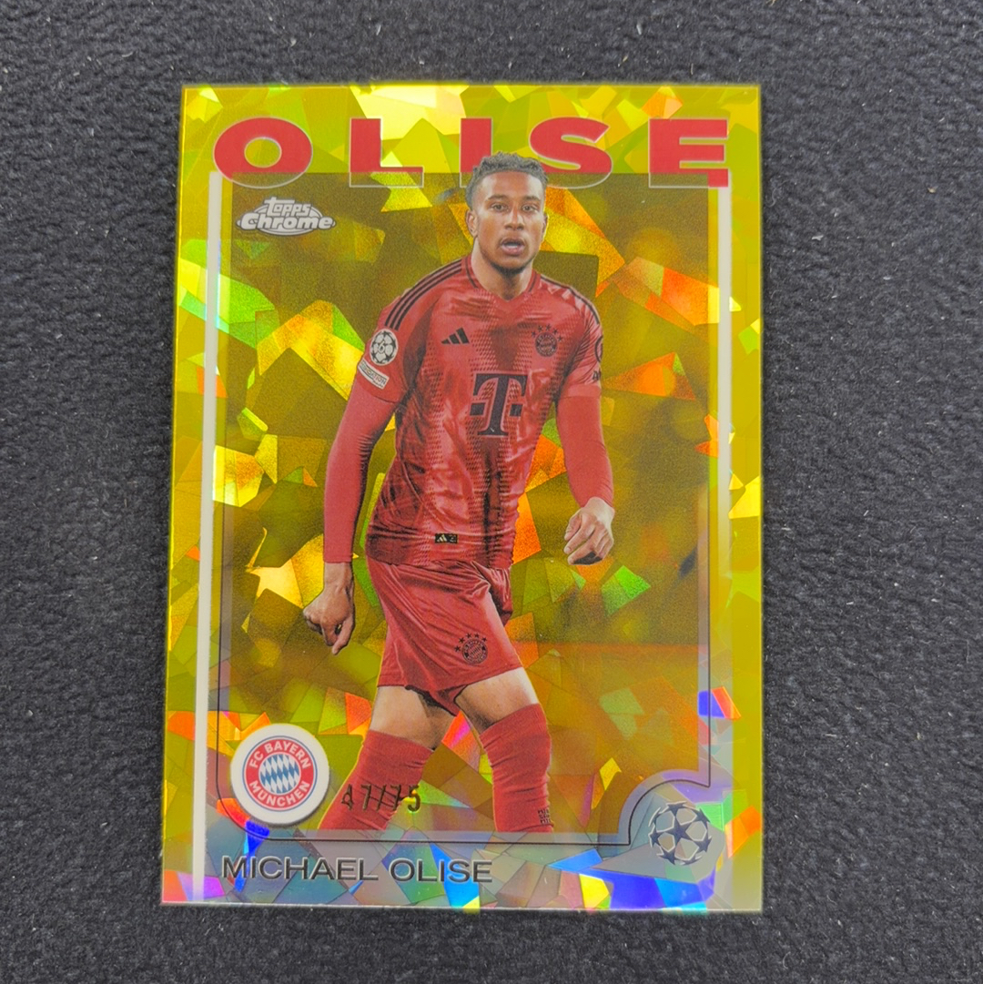 2024-25 Topps chrome 蓝宝石 Michael Olise 奥利塞 拜仁 欧冠 75编 黄碎冰折 法国