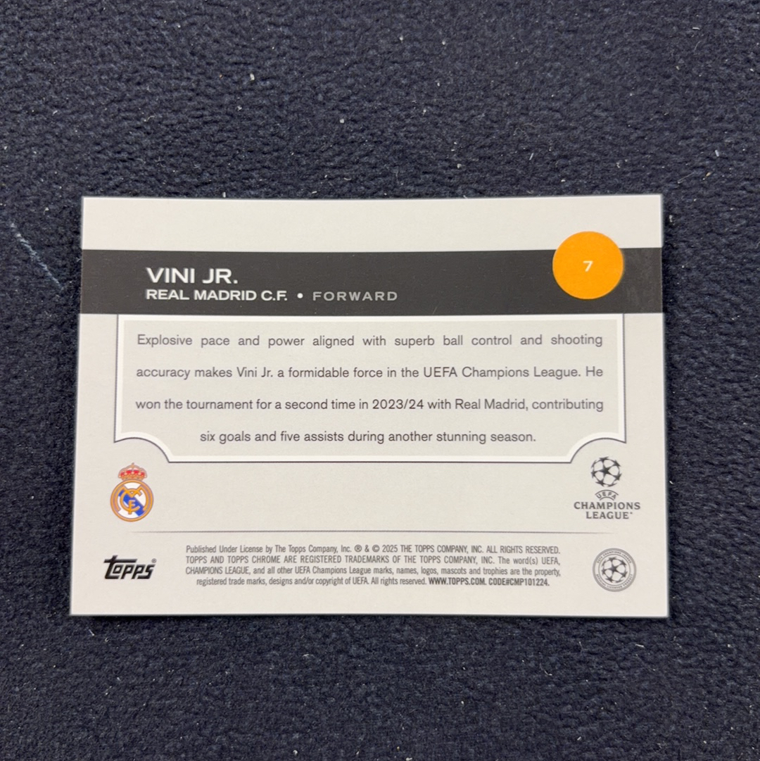 2024-25 Topps Chrome Vinicius Junior 欧冠 蓝宝石 皇马 维尼修斯 小熊 金碎冰折射 25编 限量 收藏必备(jjj)